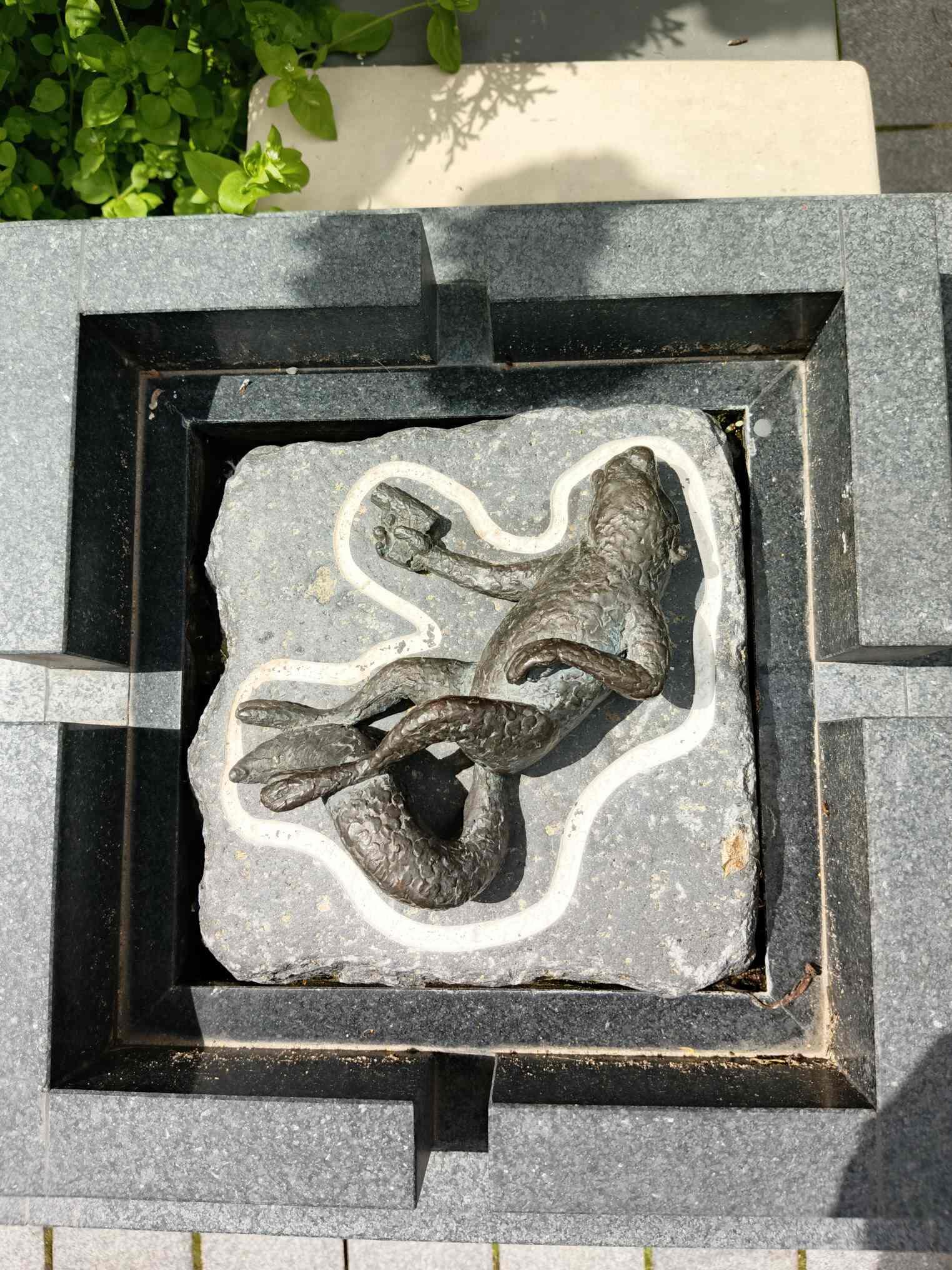 Там она - часть композиции памятника лейтенанту Коломбо из знаменитого американского телесериала. Памятник авторства венгерского скульптора Гезы Дежё Фекете появился в Будапеште в 2014 году, а спустя некоторое время рядом с ним появилась и белка с пистолетом, лежащая точно в такой же позе и очерченная мелом.