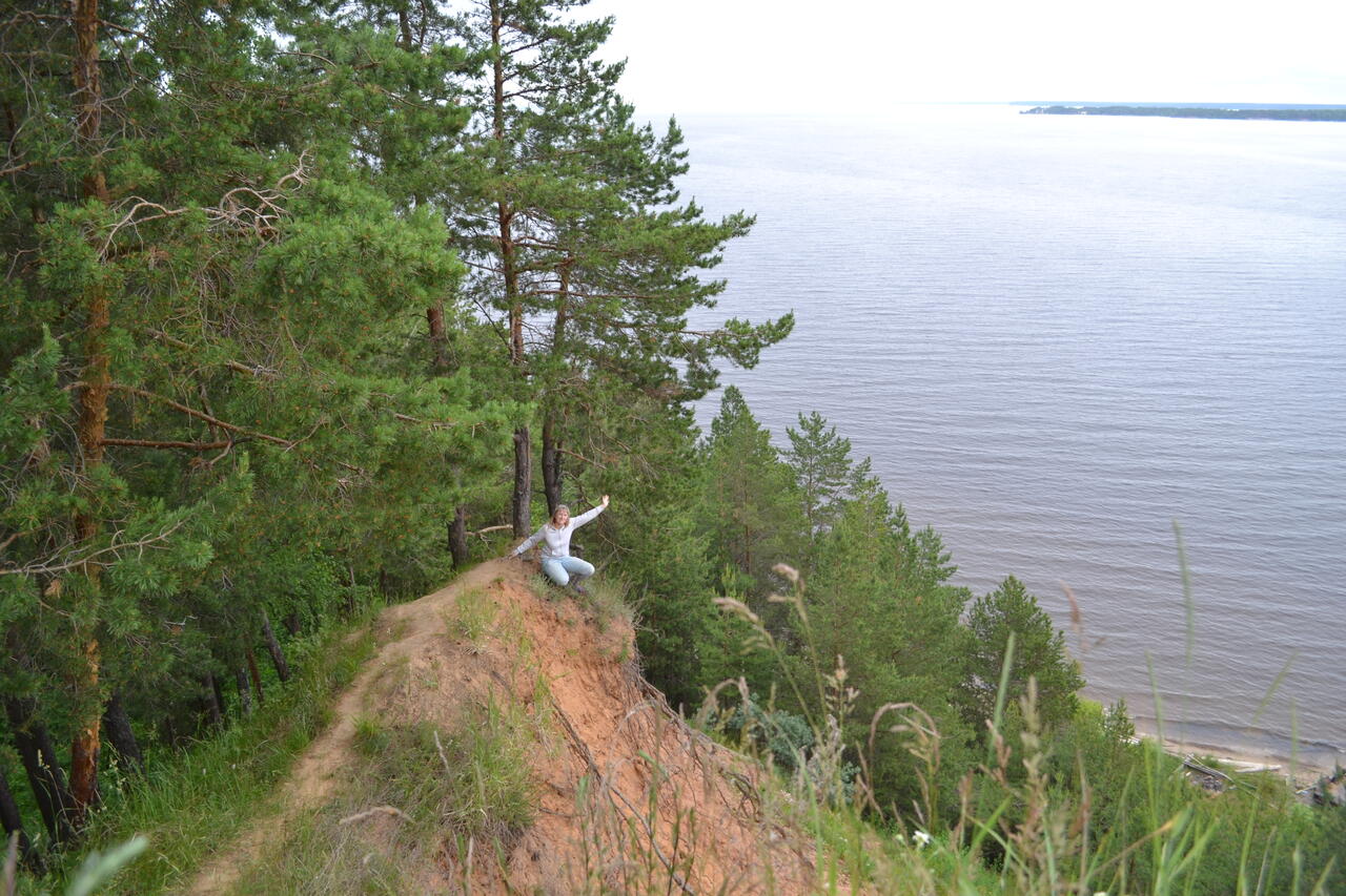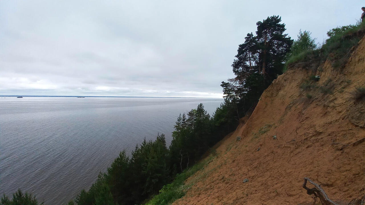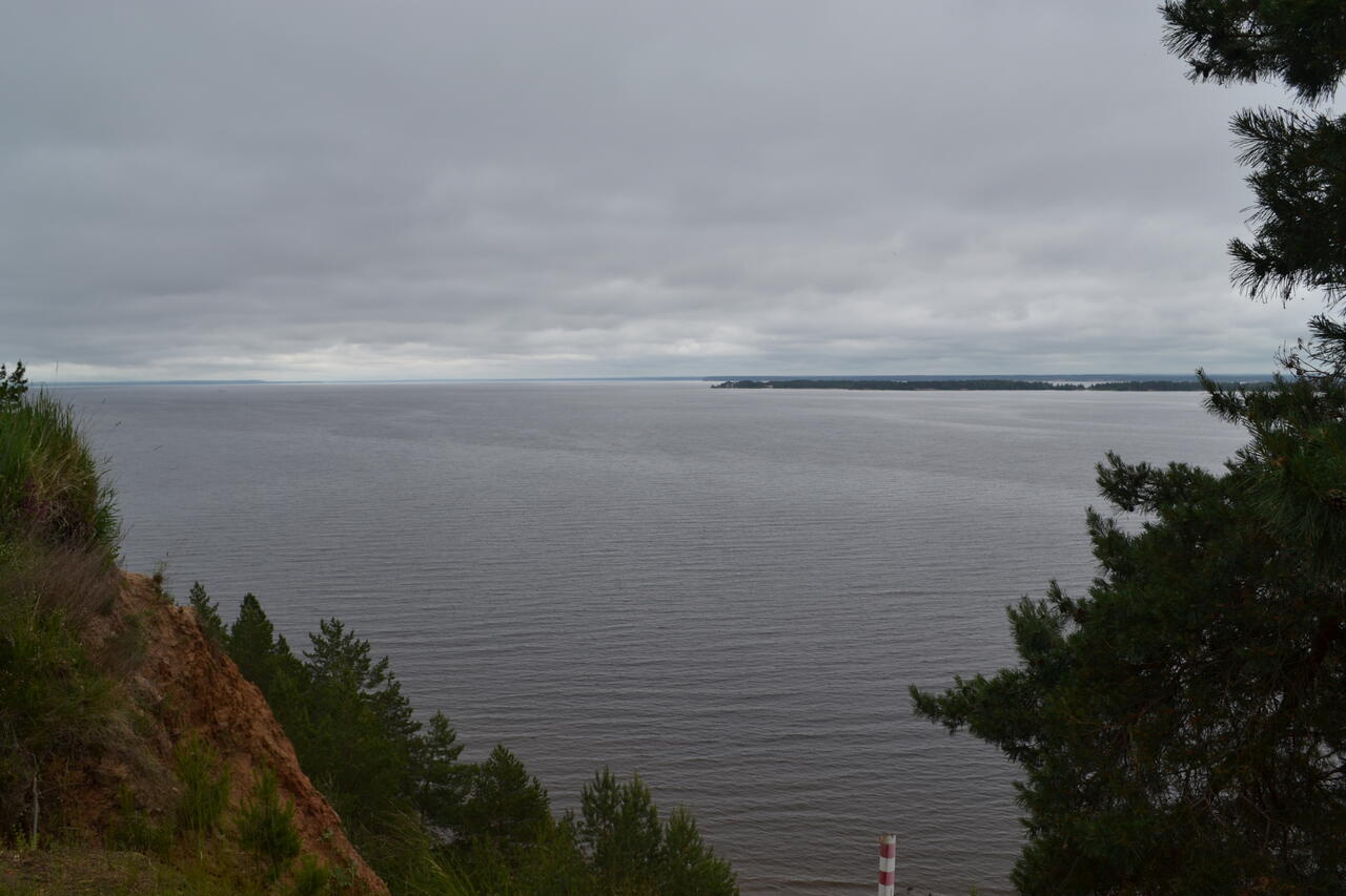 В ясный день с Большого угора можно рассмотреть колокольню Воскресенской церкви в селе Цыкино Нижегородской области, которая находится на противоположном берегу Волги, примерно в 10 километрах по прямой. Но даже если вам не очень повезло с погодой и небо затянуто низкими серыми тучами, можно сесть на скамеечку и просто слушать шум прибоя...в ветренную погоду волны с такой силой бьются о берег, что легко поверить, что ты сидишь на берегу моря... В этом месте чувствуешь какое-то особое спокойствие, слияние с природой вокруг тебя - с небом, с водой, с горой... и вдруг оказывается, что планы на день не так уж и важны, а про поиск заправки вообще все забыли:)