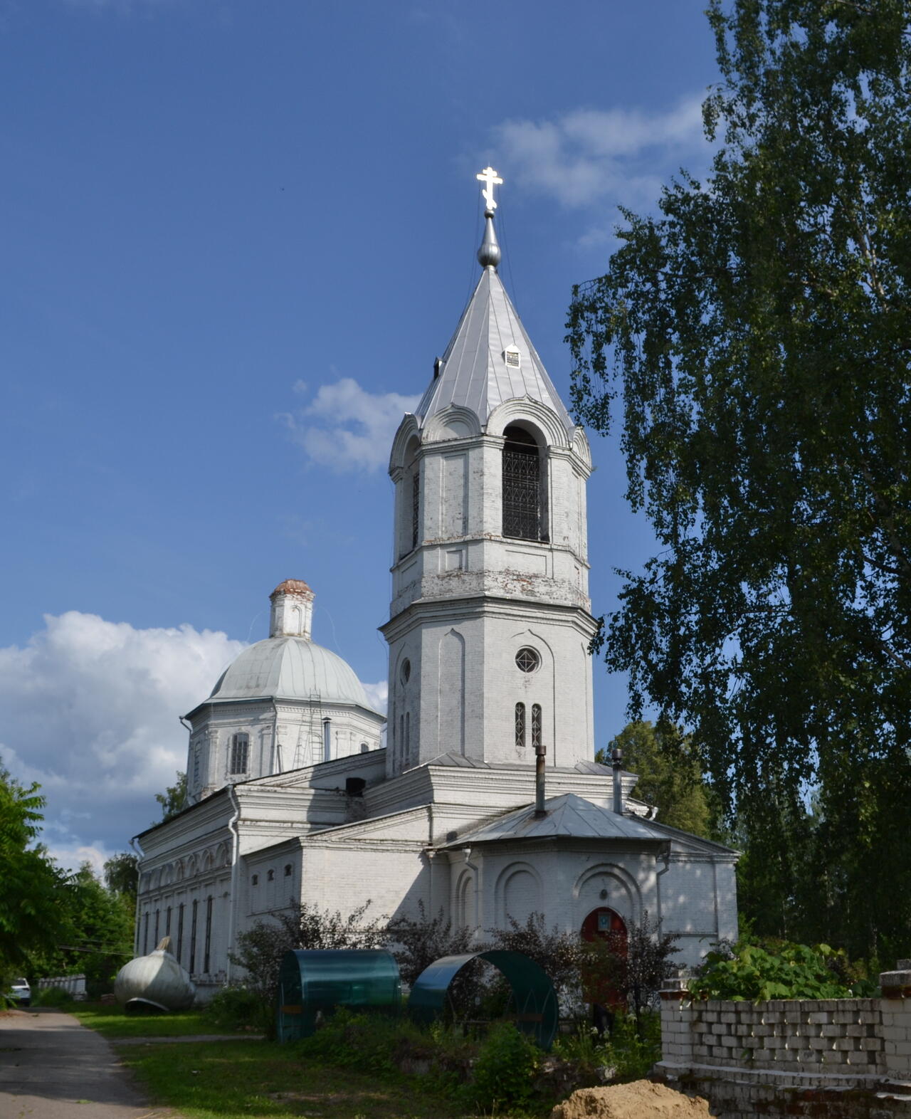 Прежде чем отправляться к Ильинскому источнику, давайте прогуляемся вокруг Храма в честь Воскресения Христова и Илии пророка (координаты в заголовке). Церковь была построена в начале XIX века. В 30-годы XX века храм частично разрушили, всё что было ценное вытащили. В 1980-х года поблизости разместили дивизион ПВО, а колокольню снесли. В 1990-х здание вернули РПЦ, в начале 2000-х началось восстановление церкви практически с нуля и строительство колокольни по старым фотографиям. Из-за того, что грунтовые воды находятся близко к фундаменту, выступают следы прежних разрушений, из-за этого церковь не выглядит "новоделом", а имеет притягательный налёт старины. За церковью находится кладбище, но даже по нему приятно прогуляться, нигде нет травы по пояс, видно, что местные жители поддерживают его в порядке.