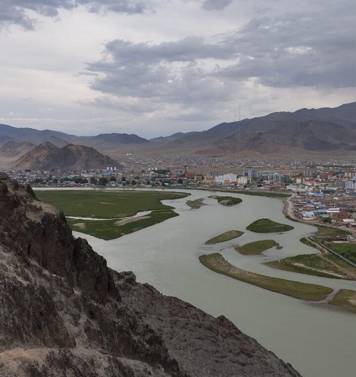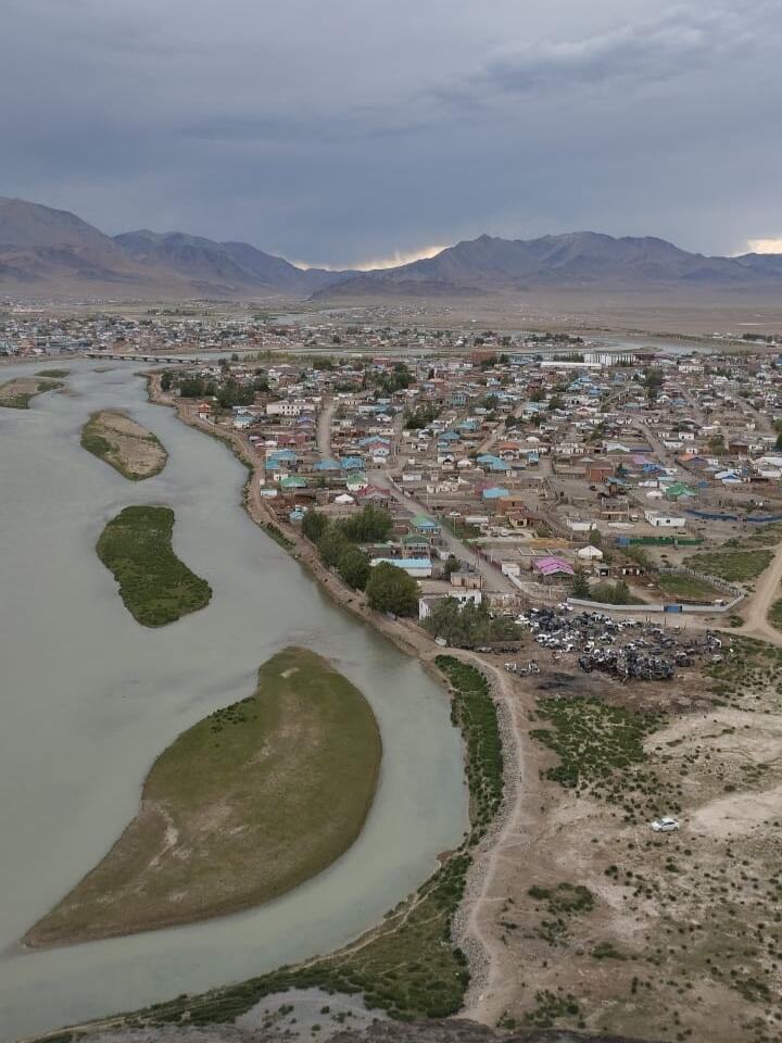 Знакомясь с городом, мы поднялись на смотровую площадку. Отсюда открывается прекрасный вид на город. Здесь построен памятный знак Найрамдал в честь дружбы Монголии и Китая.