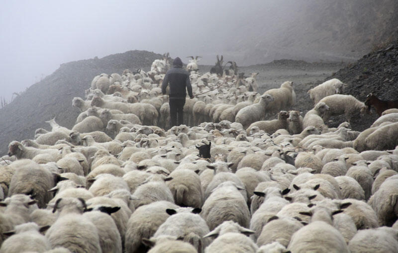 Это в наших краях осень - когда облетают листья, а здесь осень - когда вниз с гор тянутся отары. Система летних и зимних пастбищ Тушетии хоть и инвертировалась, но по-прежнему жива, и даже в современной одежде облик горцев колоритен.