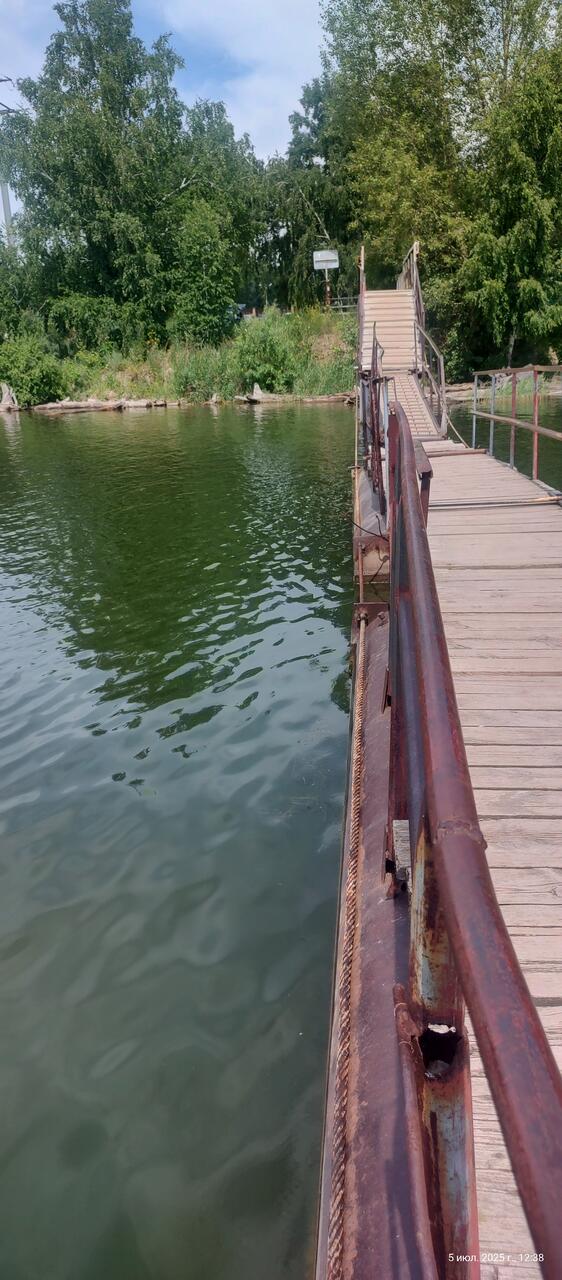 Пешеходный понтонный мост через речку Раздельная (Гуменка) важен для города Бердска. Благодаря ему бердчане могут воспользоваться самым коротким путем, чтобы добраться до восьми дачных обществ. Мост был построен примерно в 1980 году Бердским электромеханическим заводом. В заливе водятся утки, купаются местные, есть лодочная база. Вокруг дачи и сосновый бор.