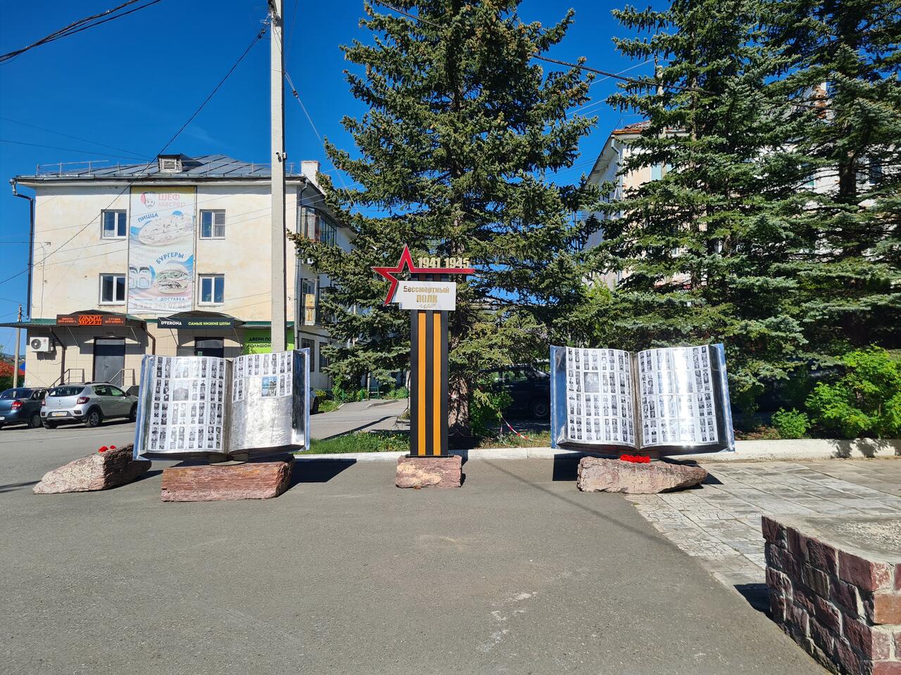 Находится на территории Дворца культуры города. Монумент «Книга памяти» посвящён, погибшим участникам в Великой Отечественной войне.В центре памятный знак — стела, увенчанная стилизованной звездой, датой 1941-1945 и табличкой с надписью «Бессмертный полк». Слева и справа расположены две раскрытые книги из нержавеющего металла, на страницах которых размещены фотографии жителей города — участников Великой Отечественной войны и тружеников тыла. Постаменты для книг — каменные глыбы.