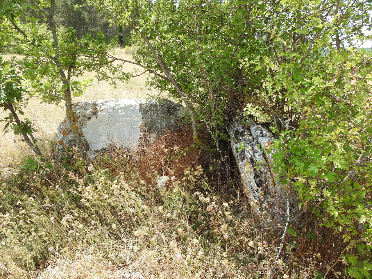 Каменные ящики, расположенные за Овражками, сохранились плохо (где-то была информация, что их разрушили уже в наше время бульдозерами при посадке лесополосы). Но все же их можно обнаружить. От одного видна только квадратная каменная плита. Другой еле различим из-за дерева, которое выросло в нем. Лучше всего выглядит ящик, от которого остались две вертикальные стенки, поставленные под углом 90 градусов.