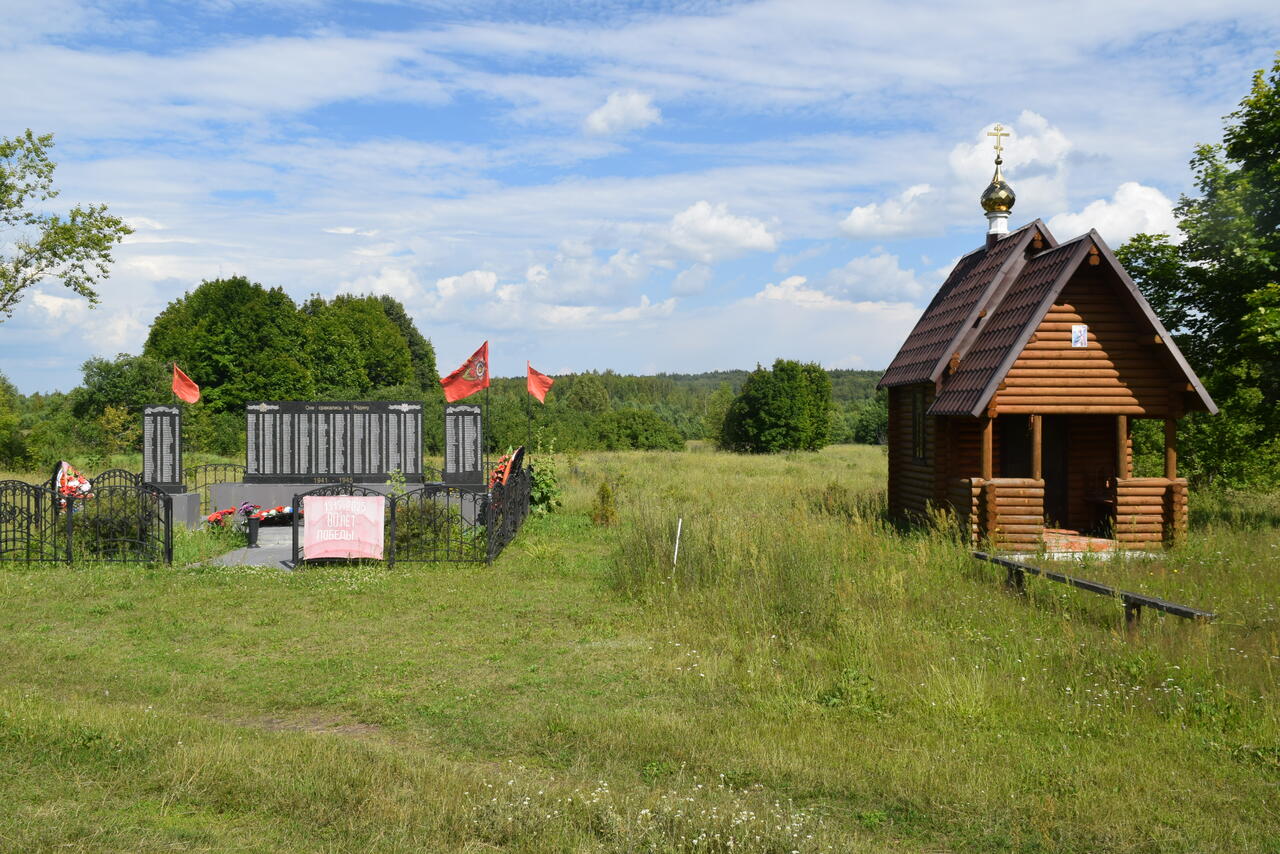 Также рядом (практически в чистом поле) открыт памятный мемориал погибшим жителям окрестных деревень. Мемориал выглядит ухоженным, видно, что о нем заботятся.