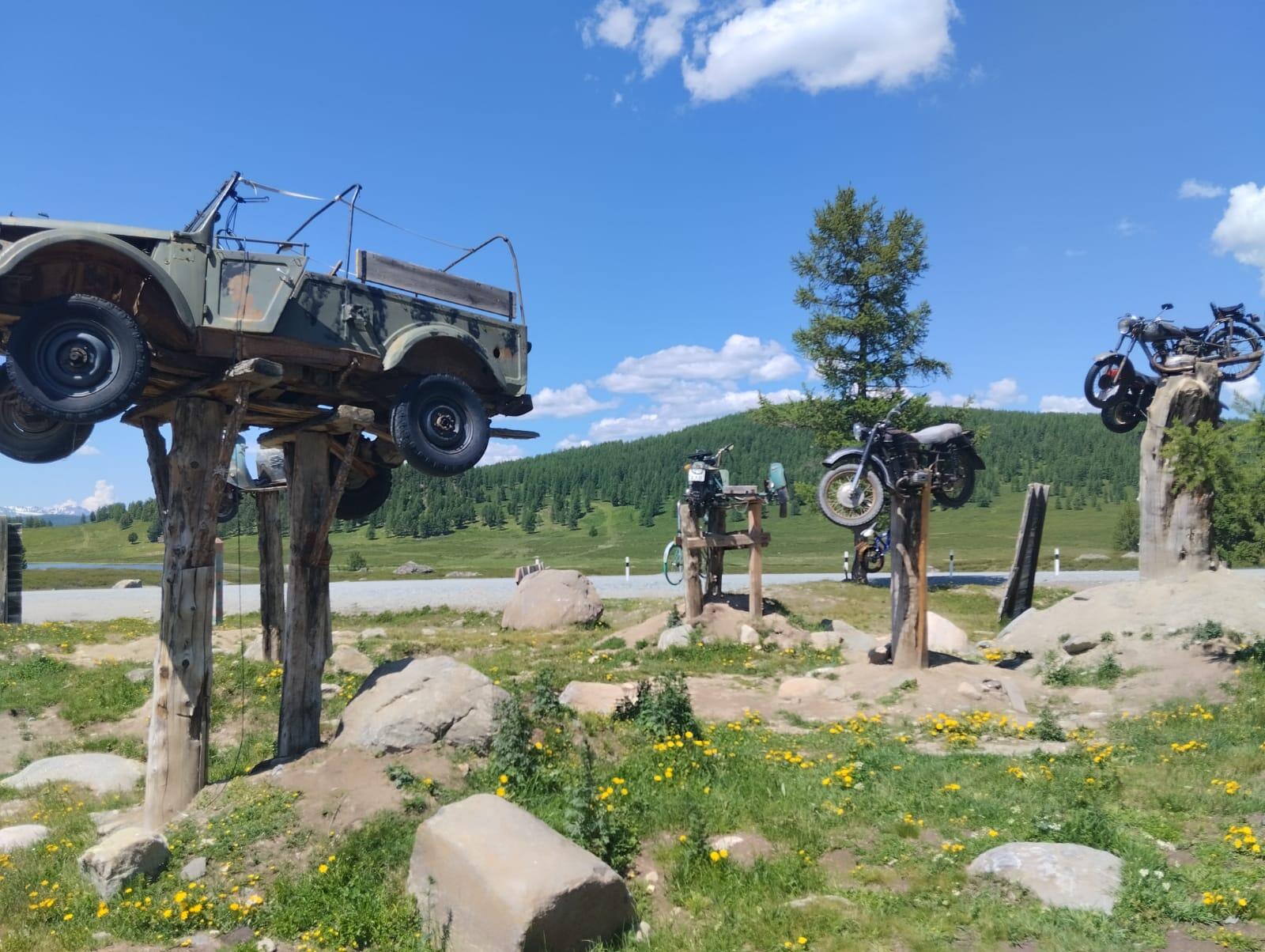 Бывший прапорщик Семёнов начал создавать эту турбазу в 2006 году, когда вышел на пенсию. Заприметил живописный участок в 20 километрах от села Акташ и начал работу. Сначала появилась банька, позже — гостевые домики, а потом музеи и арт-объекты. Постепенно «Застава» приобретала свой нынешний вид, который тоже постоянно меняется: фантазия у Валентина Михайловича неиссякаемая. Если вы едете по Улаганскому тракту, еще издали виды как бы парящие в небе ретроавтомобили. У Михалыча помимо авто вы найдете много всякой всячины. Так что интересная прогулка в пути будет только в радость.