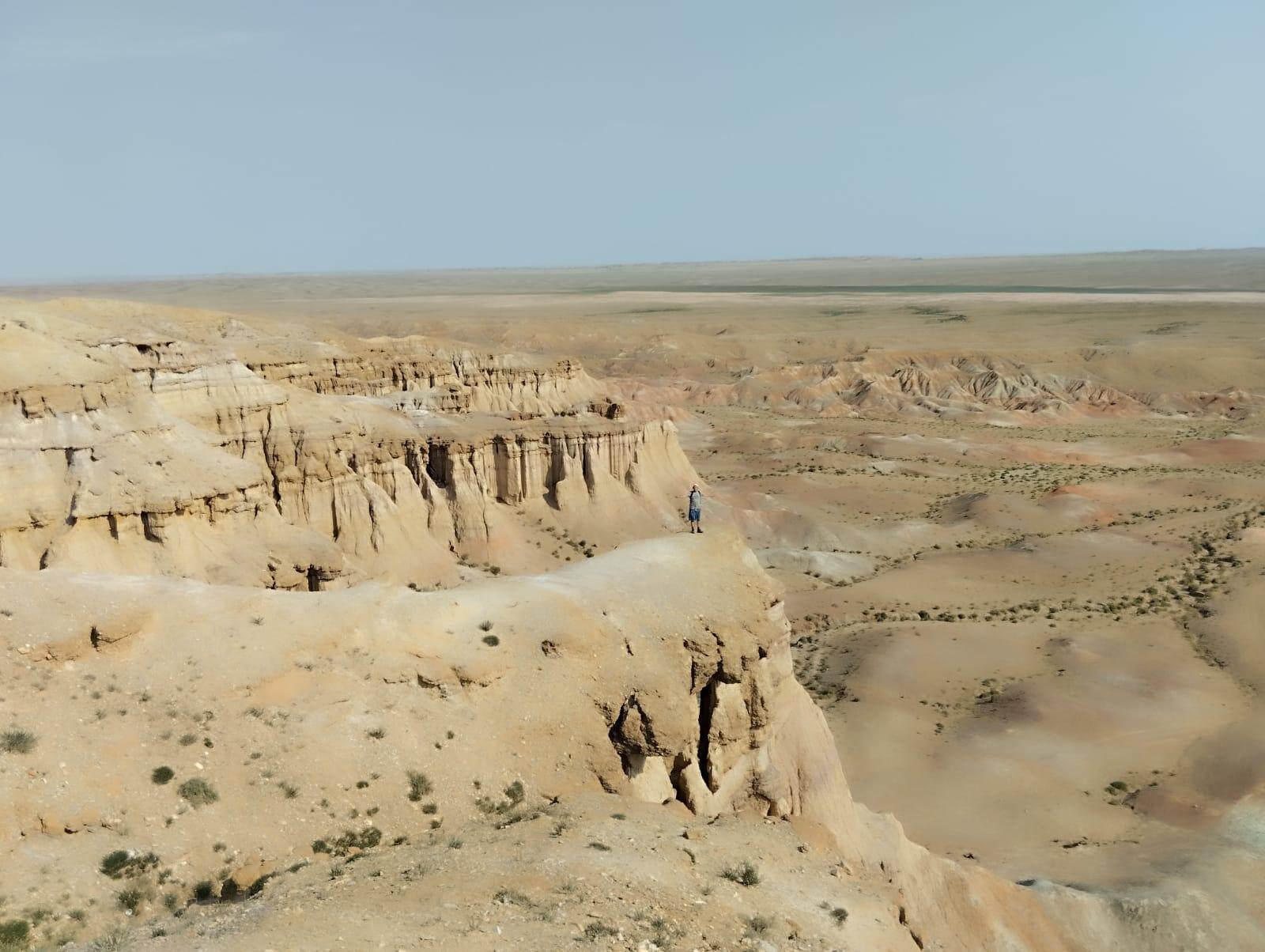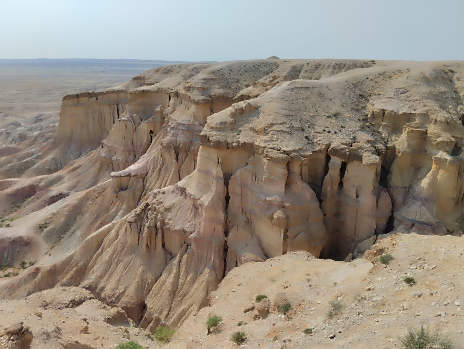 Необычной формы скалы, созданные ветрами, издали напоминают руины разрушенной храмовой постройки, поэтому издревне монголы и дали каньону название Цагаан Суварга. В переводе он означает «Белое Святилище». Высота утеса составляет 30 метров, а ширина почти 400 метров.