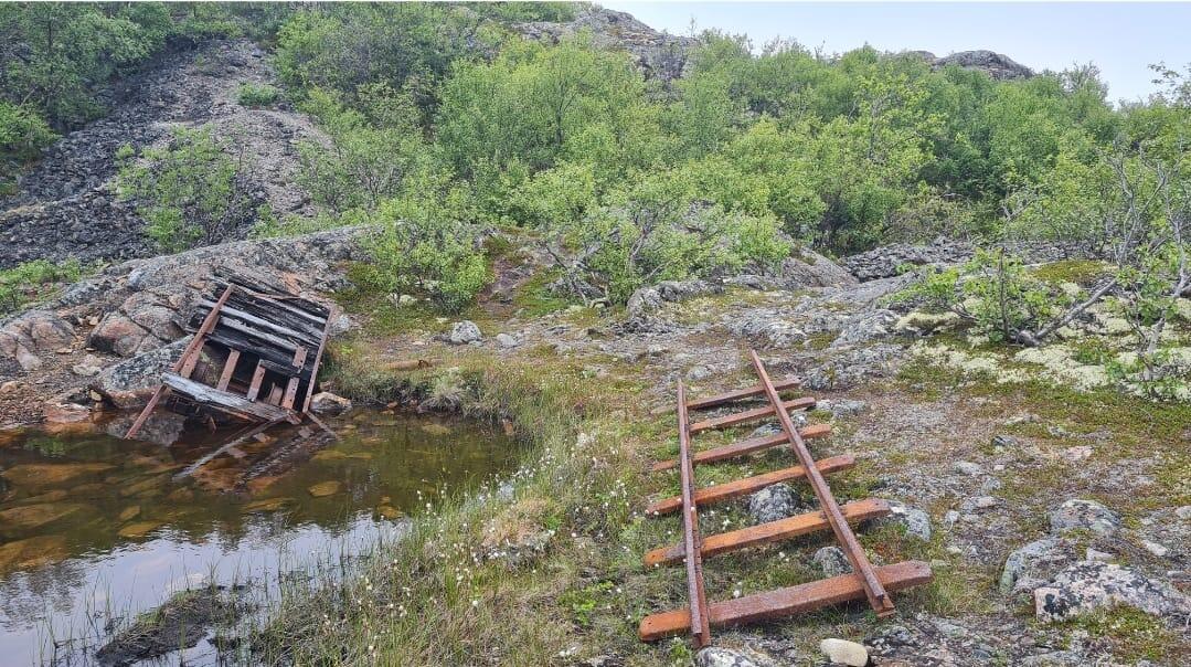 Там же вблизи вы увидите остатки узкоколейки и вагонетку. По утверждению источников ,на ней вывозили породу при пробивке подземелий в гранитных сопках, а позднее эта же вагонетка использовалась как прожекторная платформа для поиска целей в Мотовском заливе. Спустя более чем семь десятков лет соседнее озерцо все еще бурое от вываленных в него патронов и снарядов. Часто советские саперы, приходя после боев на очередной укрепрайон не тратили время на муторный подрыв немецких боеприпасов, а сваливали весь хабар в ближайший водоём.