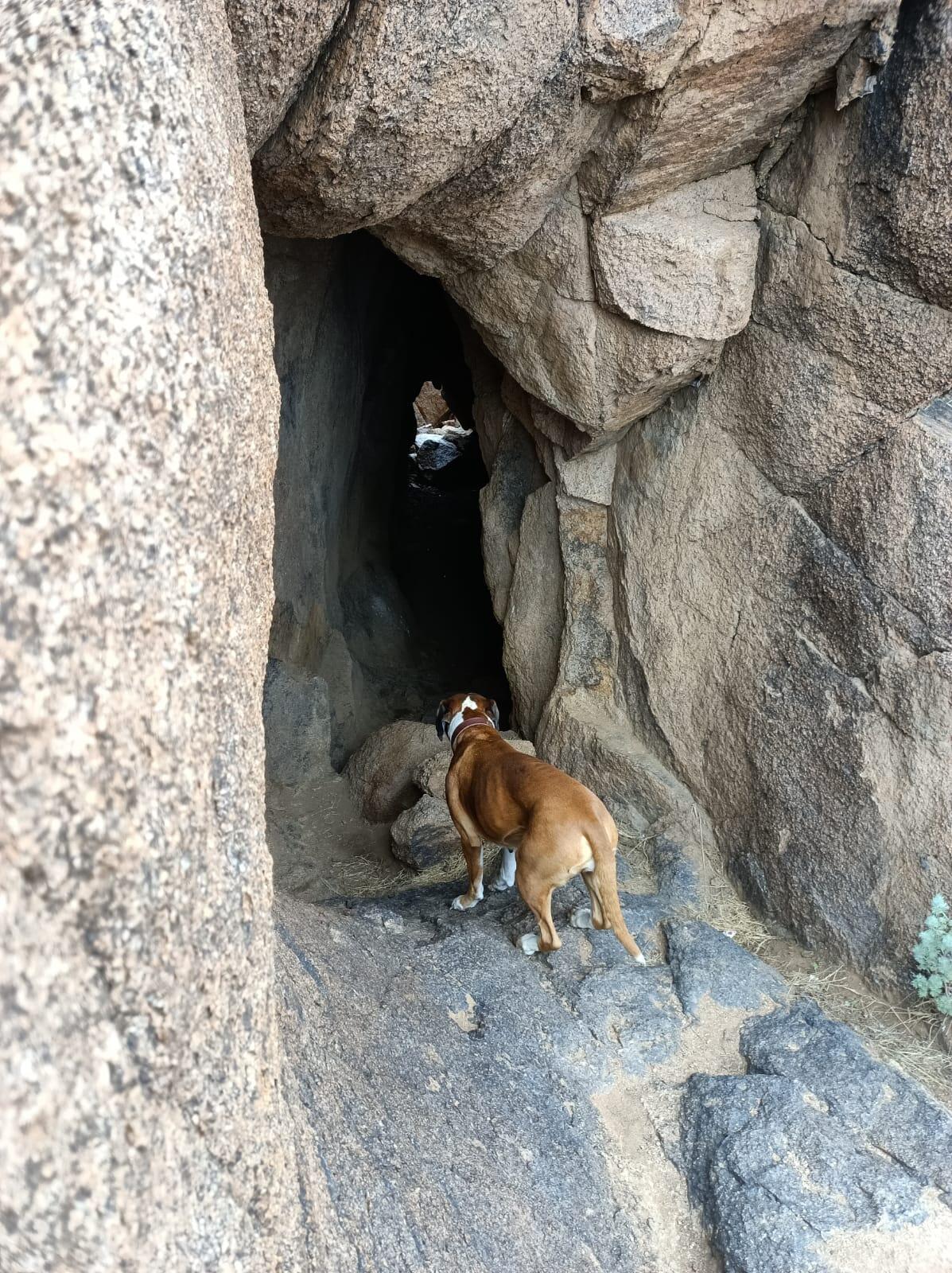 Путеводители говорят, что в этом массиве есть 40 пещер. Мы же отыскали лишь несколько и этот тайник приглашает вас посетить пещеру Эхийн умай и родиться заново. Умай – это имя древней богини плодородия. Но ещё это слово имеет и более земное значение: эхийн умай - материнское чрево (утроба матери). Полагается влезть с одной стороны(широкий вход) и, пройдя 5-6 метровую пещеру насквозь, выбраться с другой стороны, через узкий лаз. На информационном стенде значилось, что каждый, кто совершит это действо, символически снова рождается на свет и очищается от всех грехов. Конечно же мы все захотели пройти этот путь! И если подъём наверх был довольно просто, то на выходе нас ждал захватывающий вид на окрестности и довольно крутой и извилистый спуск по камням. Очень впечатляющая локация!