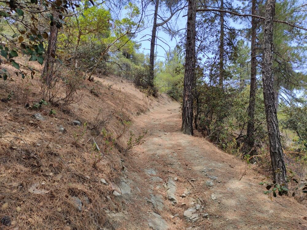 Длина маршрута составляет около 1,5 километра, и пройти его можно за 45–60 минут. Он считается лёгким, поэтому отлично подойдёт для неспешной прогулки, особенно для тех, кто хочет погрузиться в природу без необходимости покорять вершины. Несмотря на небольшую протяжённость, тропа проложена в зоне уникального геологического образования — Троодосского офиолита, что делает её особенно интересной для любителей геологии. По пути можно увидеть породы габбро — древние остатки океанической коры, поднявшиеся на поверхность миллионы лет назад.