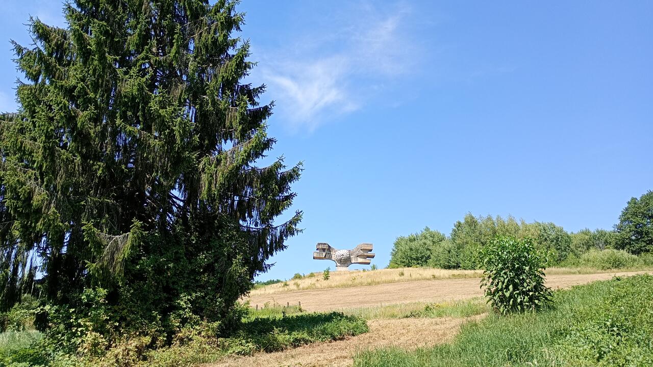 Споменик символизирует крылья победы, выглядит все динамично из-за того, что крылья несимметричны. В середине металлическое ядро, а-ля солнце символизирует политическую прочность и единство. По крайней мере так высказывался автор. Понятно, что у народов Югославии было мало скреп – партизанская борьба – главная из них.