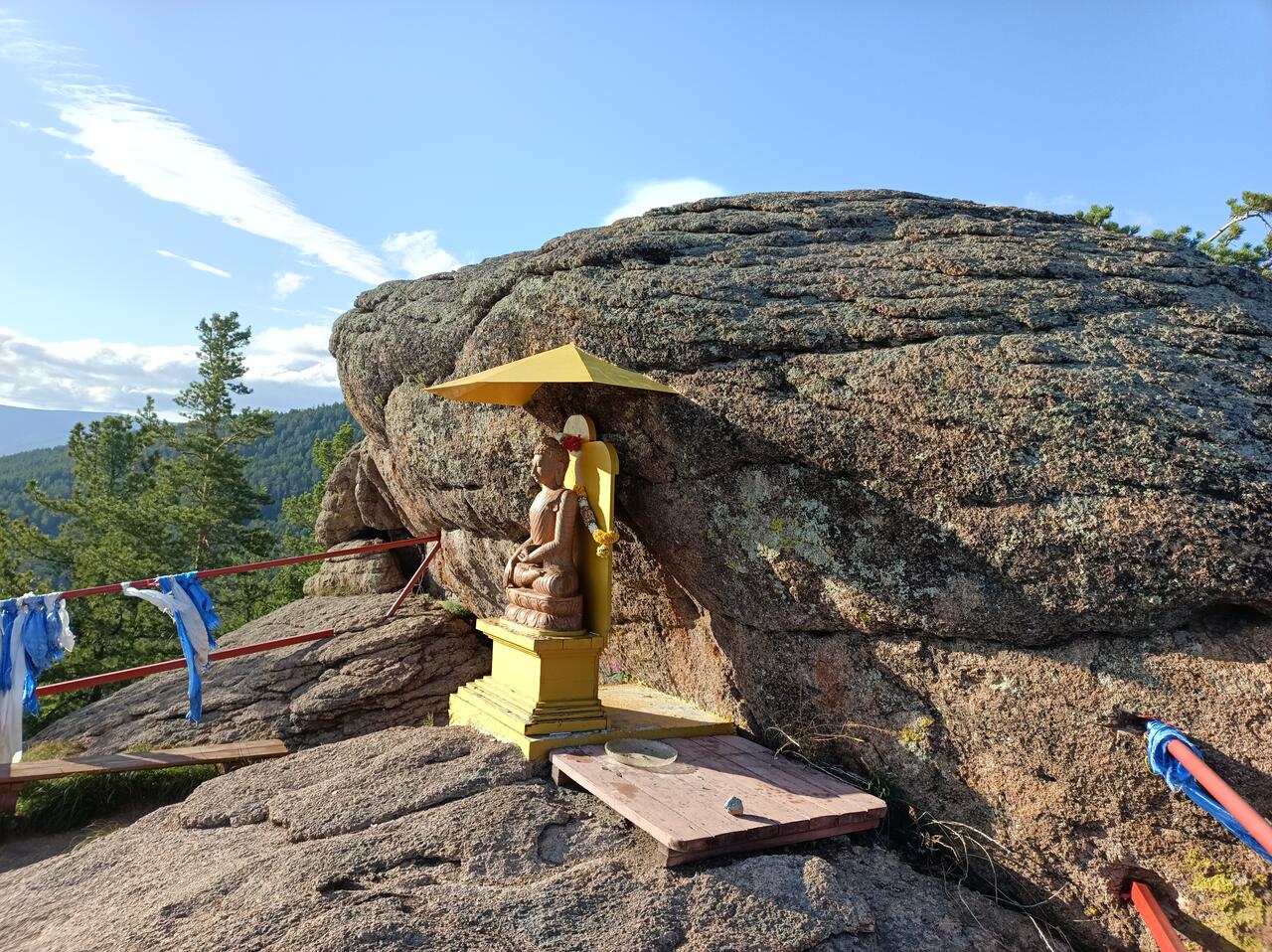 - Тогда мы стали подыскивать подходящий объект. На Байкале это было сложно сделать чисто технически. В других районах тоже искали. То слишком низкие, то слишком высокие, то слишком рельефные попадались скалы. И в 2015 году, когда мы под Баянголом устанавливали тоже статую Будды, но маленького, метрового, изготовленного по спецзаказу в Индии из оникса, я обратил внимание на соседнюю скалу. Она идеально подходила для воплощения задумки Учителя – ровная, красивая и достаточно высокая, около полусотни метров. И главное – идеально расположена! – вспоминает ближайший ученик Ринпоче геше-лхарамба Тензин-лама.