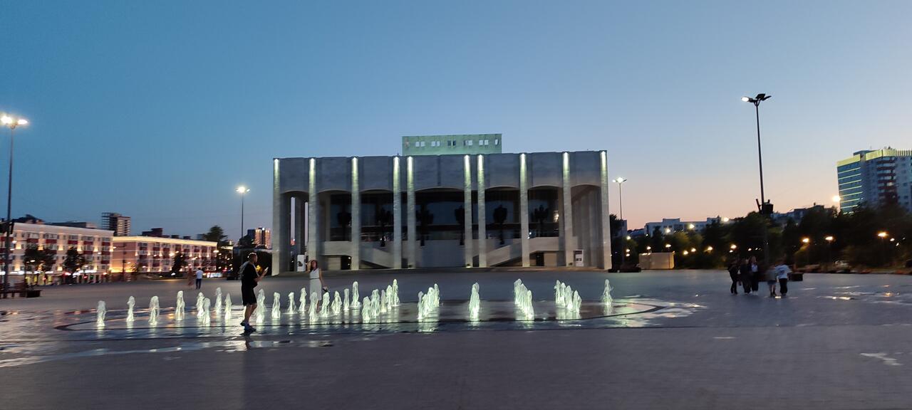Гуляя по Пермской Городской эспланаде (вот так экзотично в Перми называется парк с прогулочной и памятной зонами) в сезон белых ночей, увидели сквозь струи фонтана громаду театра с причудливыми фигурами на волшебных фонарях – как будто в кукольном театре над ширмой кукольник-великан управляет одновременно всеми героями всех великих пьес. Поднялись рассмотреть поподробнее и вас приглашаем. Но сначала несколько исторических фактов о театре с таким необычным названием : Театр-Театр: