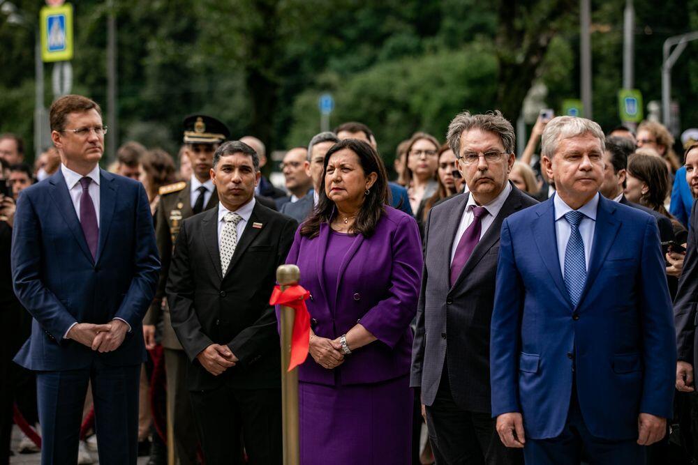 Как положено, состоялась торжественная церемония открытия монумента. Памятник открывали заместитель Председателя Правительства РФ Александр Новак, мэр венесуэльской столицы Каракаса – Кармен Тереза Мелендес, глава Департамента внешнеэкономических и международных связей города Москвы Сергей Черёмин, Министр нефти Венесуэлы, сопредседатель Российско-Венесуэльской межправительственной комиссии Педро Тельечеа, директор Латиноамериканского департамента МИД России А.В. Щетинин. В церемонии также приняли участие Чрезвычайный и Полномочный Посол РФ в Боливарианской Республике Венесуэла Сергей Мелик-Багдасаров и Чрезвычайный и Полномочный Посол Венесуэлы в РФ Хесус Рафаэль Саласар Веласкес. А также представители официальной венесуэльской делегации, федеральных и столичных органов власти, дипломатических миссий, венесуэльской диаспоры в столице, а также москвичи и гости столицы.