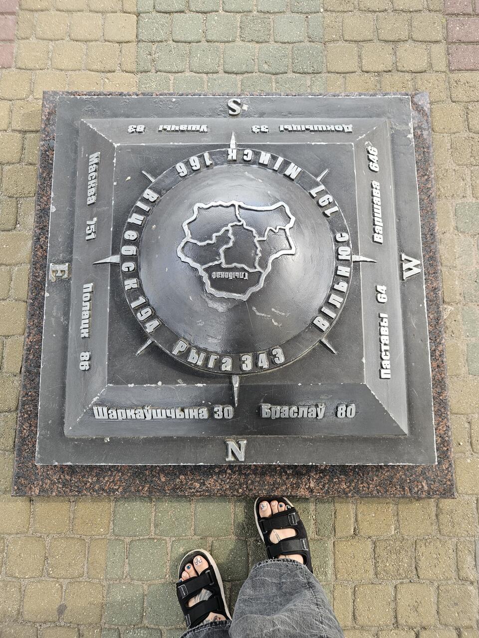 Памятник Нулевой километр в Глубоком. Установлен в честь 600-летия города. На нем указаны расстояния до близлежащих и не только населенных пунктов. Например, отсюда до Полоцка 86 км, до Москвы 751 км, а до Варшавы 648 км.