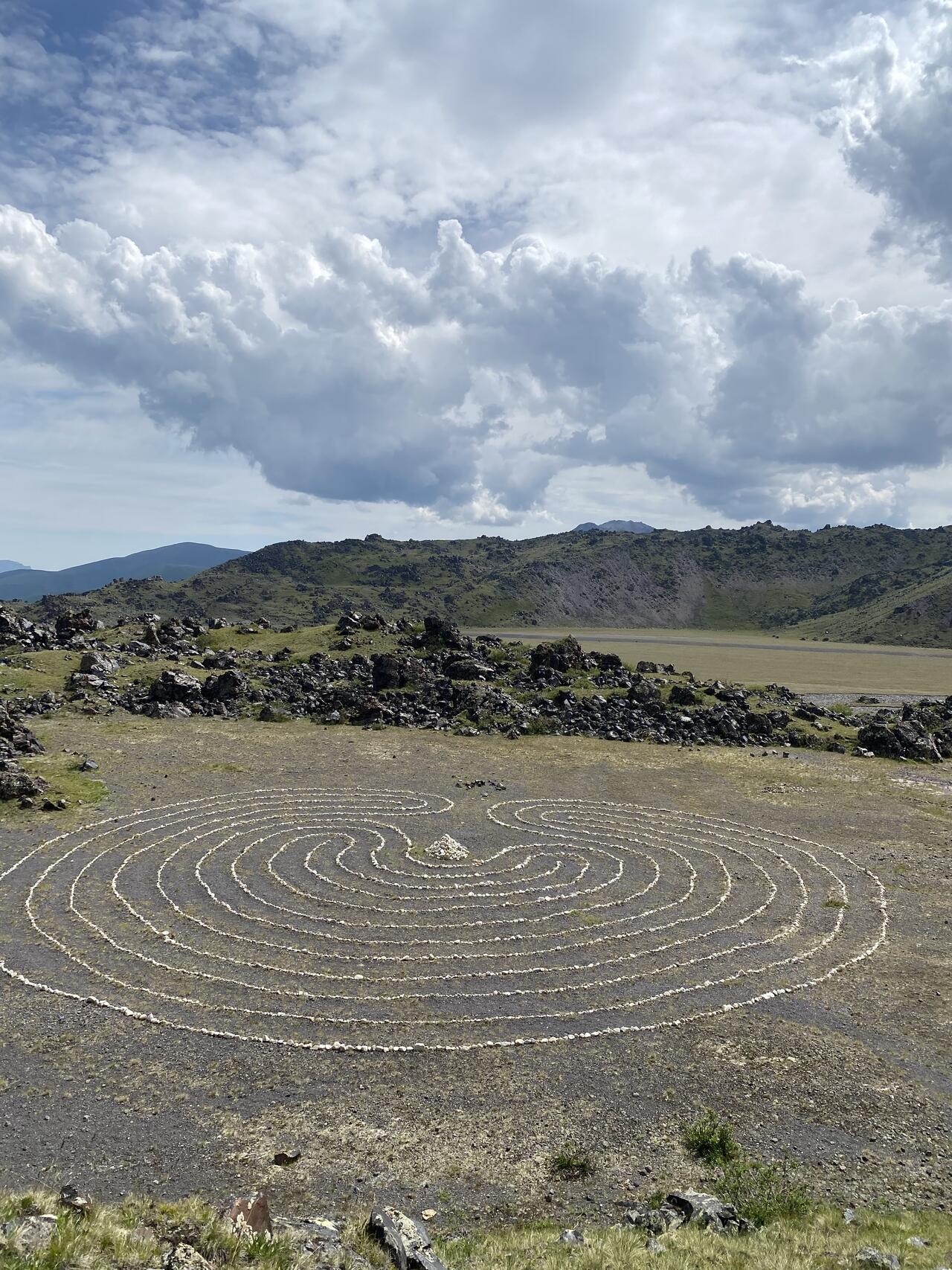 Недалеко от Немецкого аэродрома, вдоль которого идет туристическая тропа к Каменным грибам и северному базовому лагерю, из которого альпинисты идут на штурм вершины Эльбруса, за каменными холмами, имеется Белый лабиринт. Этот объект - менее известен, чем другие достопримечательности северного Приэльбрусья. Он реже посещается туристами, не бросается в глаза. Чтобы найти его - надо знать его точное месторасположение. Лишь при наличии острого зрения или оптических приборов, его можно разглядеть с вершины подъема от поляны Немецкого аэродрома в сторону Каменных грибов. Кто, когда и зачем выложил Белый лабиринт? Попробуем в этом разобраться.