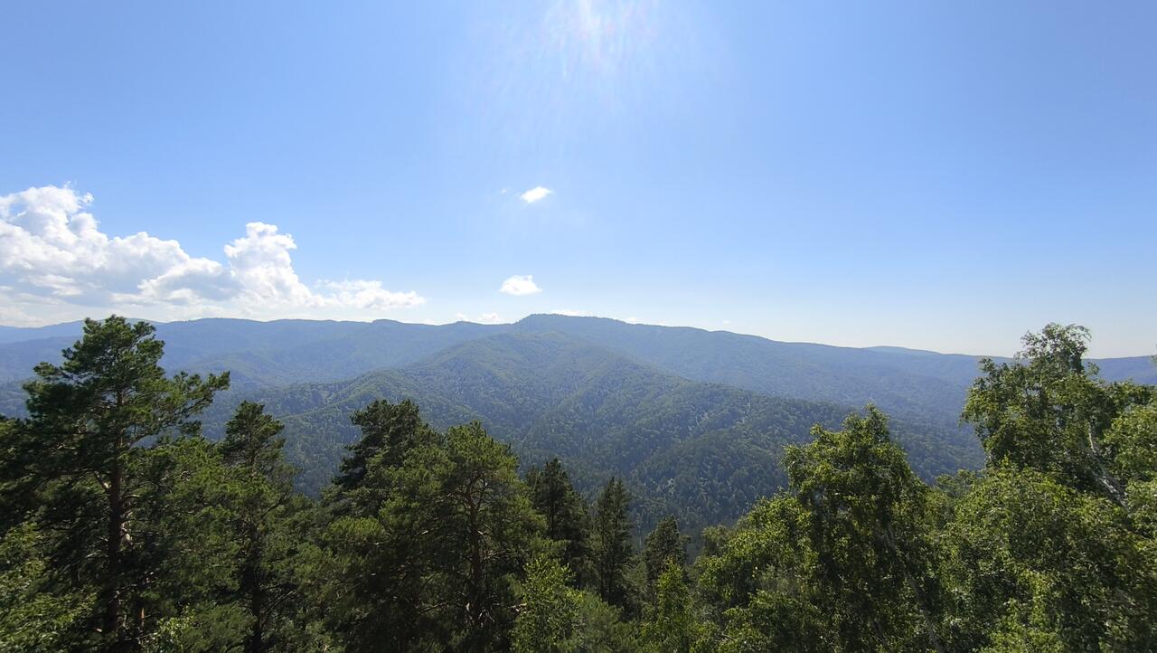 На вершине открывается прекрасная панорама: вид на Белокуриху, долину реки, а в ясную погоду можно увидеть гору Малая Синюха. Особенно красивы закаты, когда скалы окрашиваются в золотистые тона. Мы были днем, но красота была неописуемая!