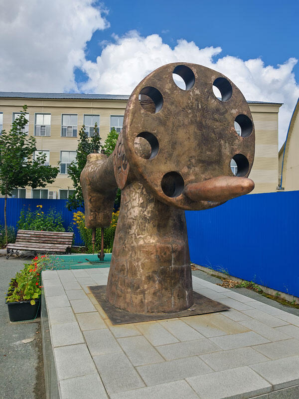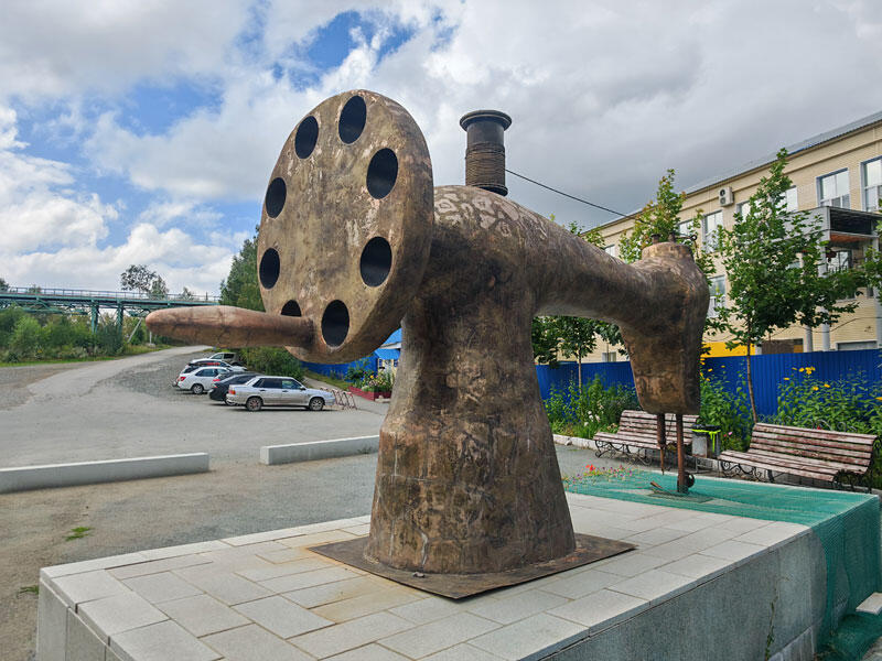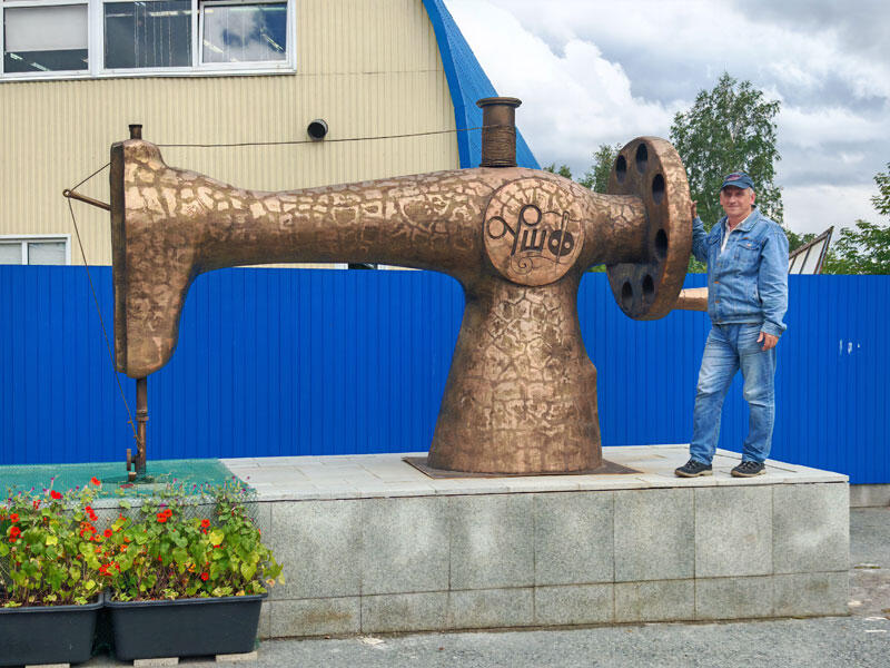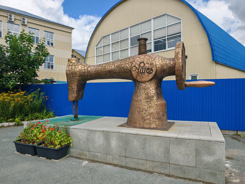 Арт-объект «Швейная машина» установлен перед Учалинской швейной фабрикой.