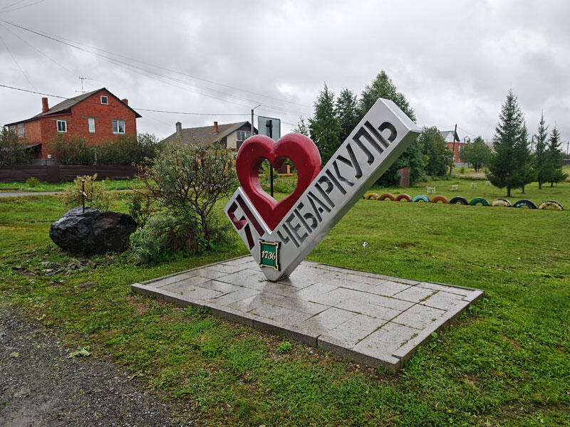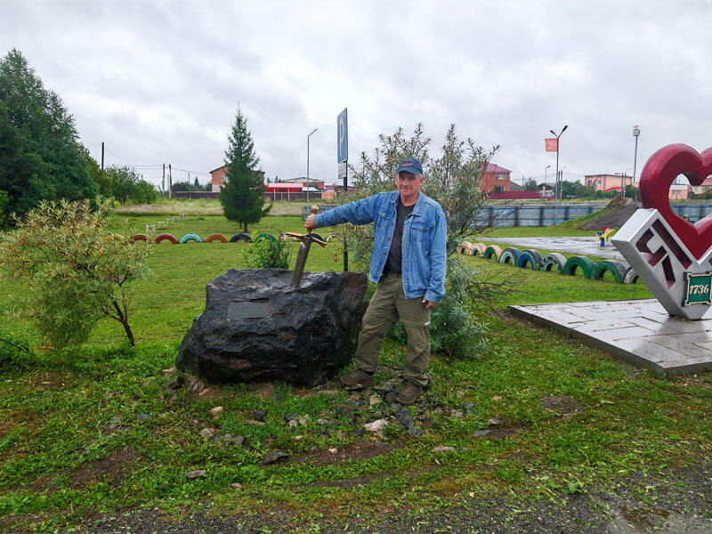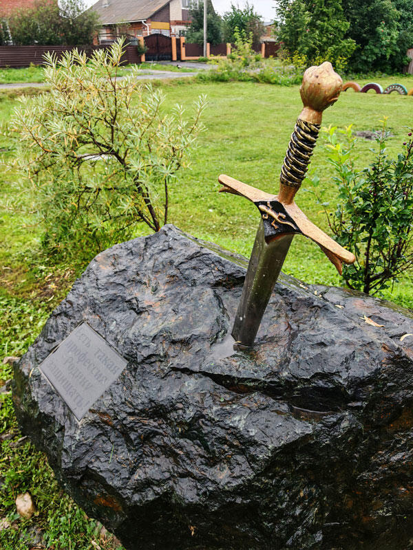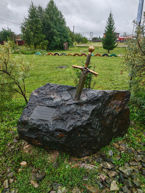 Арт-объект "Меч в камне" стоит рядом с дорогой в посёлке имени Куйбышева (г. Чебаркуль).