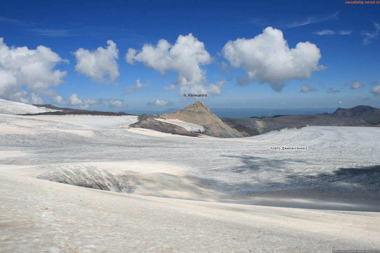 Чем еще примечателен пик Калицкого? Ледовое озеро Джикаугенкёз, название которого, кстати, переводится как «глаз джинна», давно превратилось в место паломничества людей, желающих приобщиться к космическому и энергетическому потенциалу. И это вовсе не шутка – над пиком Калицкого действительно зарегистрированы мощные потоки энергообмена между Вселенной и Землей. Объяснить данный феномен пока не удаётся, но достоверность факта от этого не меняется. Вершина скалы, как говорят, выполняет функцию своеобразного ретранслятора. Кроме того, с севера на пике видна площадка, происхождение которой может быть искусственным. На высоте 3 400 м над уровнем моря существует небольшое ровное плато, будто срезанное острым мачете. Помимо этого, внимательный турист может заметить следы древней дороги, ведущей к вершине. Кто и зачем ее там построил? Предполагается, что некогда здесь проводились культовые ритуалы.