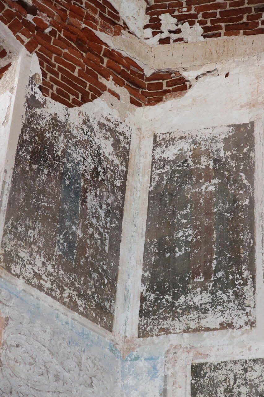Так же сохранились руины церковноприходской школы – двухэтажное Г-образное в плане здание