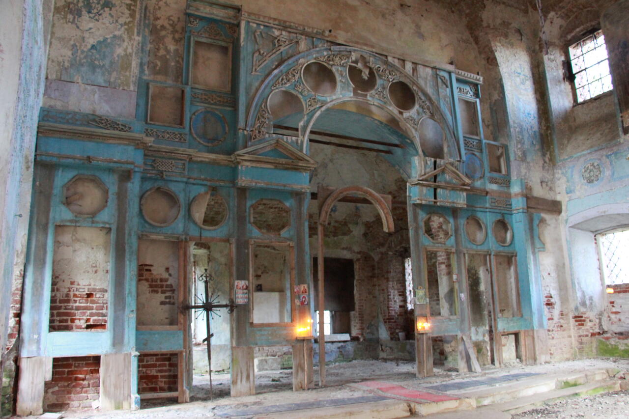 Воскресенский храм закрыт богоборцами во времена гонений на Православную Церковь, сейчас медленно разрушается.