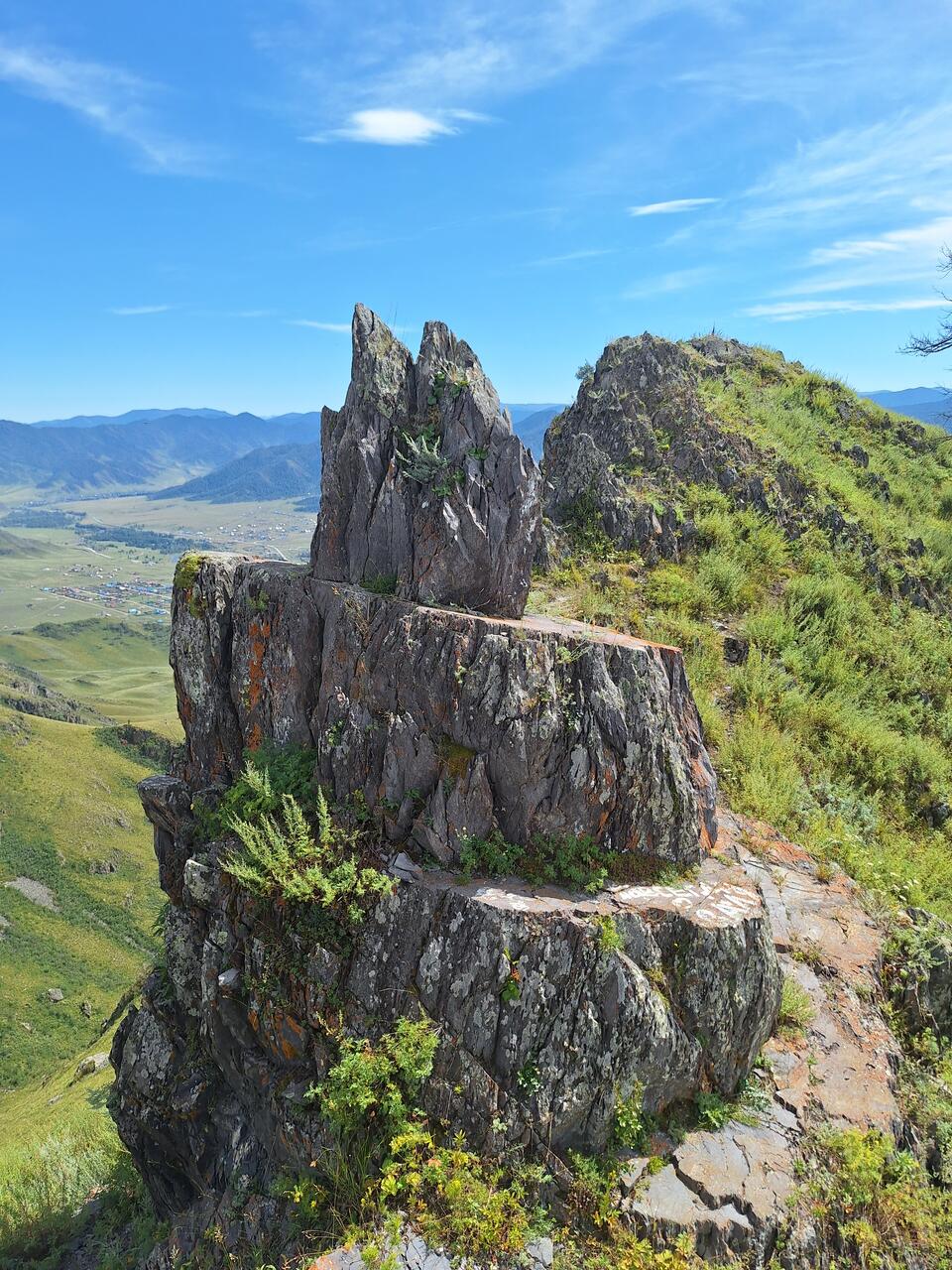 Тайник прикопан под лиственницей, между флагом на вершине горы и примечательным камнем в виде пирамиды. Подъем довольно сложный, закладывайте весь день, бери еду и воду, рекомендуется обувать треккинговую обувь. С высоты открывается вид на весь Онгудай, Улиту и снежные вершины в сторону Белухи.