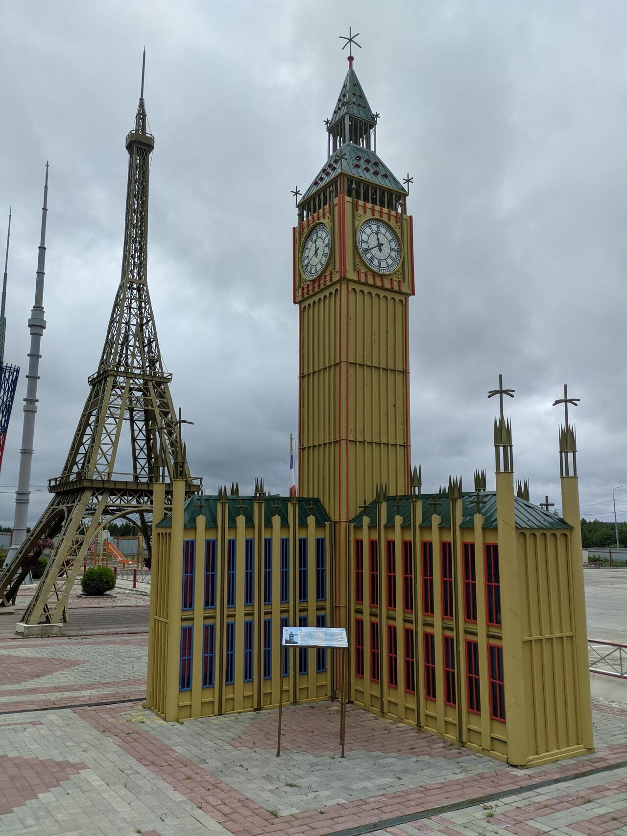Краем глаза заметил что-то необычное, решил остановиться и поглядеть. Не знаю, чему удивился больше: тому, сколько здесь всего собрано, или тому, что объект до сих пор без тайника ) Судя по табличкам, строительство началось более 5 лет назад и за это время у придорожного кафе "Ковчег" появились макеты знаменитых сооружений со всего мира! Здесь и Останкинская телебашня, и статуя Христа из Рио-де-Жанейро, и Биг Бен, и Арарат, и Парфенон, и много чего ещё. В дальней дорогое (а кафе и все объекты находятся рядом с трассой) отличный вариант, чтобы немного размяться и отвлечься.