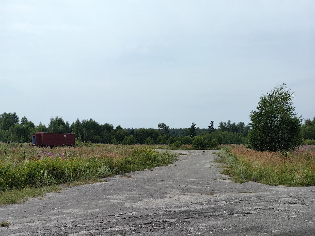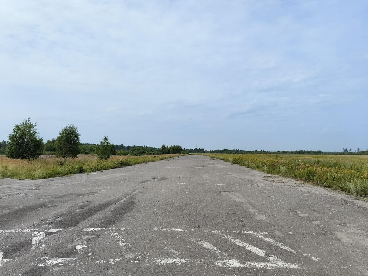 Заасфальтированный участок странной формы в поле - это бывший аэродром Янино.