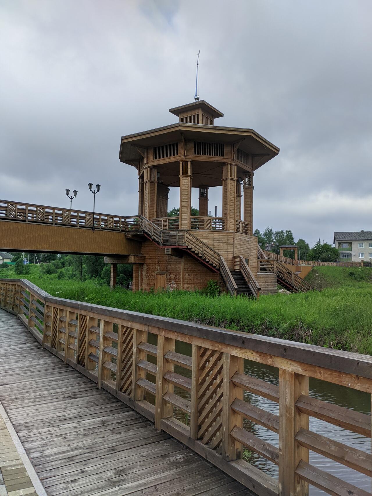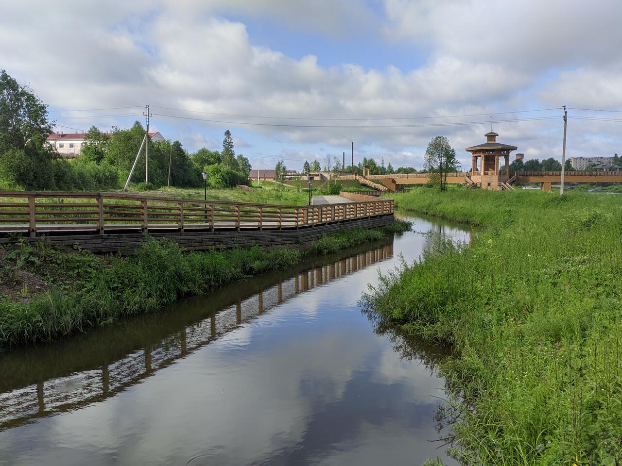 Настоящая гордость вытегоров – набережная реки Вытегры. За последние несколько лет на средства, выделенные из федерального и регионального бюджетов в историческом центре города была воссоздана деревянная набережная в дореволюционном стиле. Здесь появились смотровая площадка и пешеходная зона с деревянной ротондой, светомузыкальный фонтан, детская площадка с амфитеатром и сценой, деревянный пешеходный мост через реку. Особое внимание архитекторы уделили внешнему облику конструкций – отдельные элементы которых выполнены в стиле гидросооружений Мариинской водной системы 19 века, воссозданном по историческим фотографиям. В рамках проекта на своем историческом месте был воссоздан и полушлюз Деволант, первое гидротехническое сооружение Мариинской водной системы.