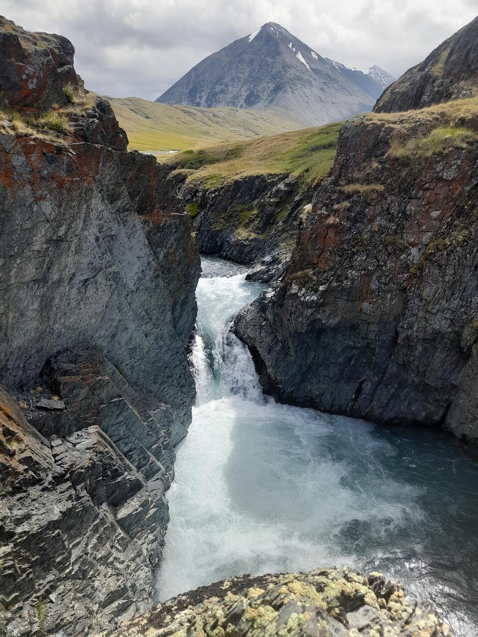 Тропа идет с небольшим подъемом вдоль русла реки. Постепенно скалы сжимают русло, и вот перед нами уже не равнинная речушка, а бурлящий в каньоне поток! Два изумительной красоты и мощи водопада бирюзовой реки заставят вас надолго остановиться, чтобы любоваться, восхищаться этим природным творением!