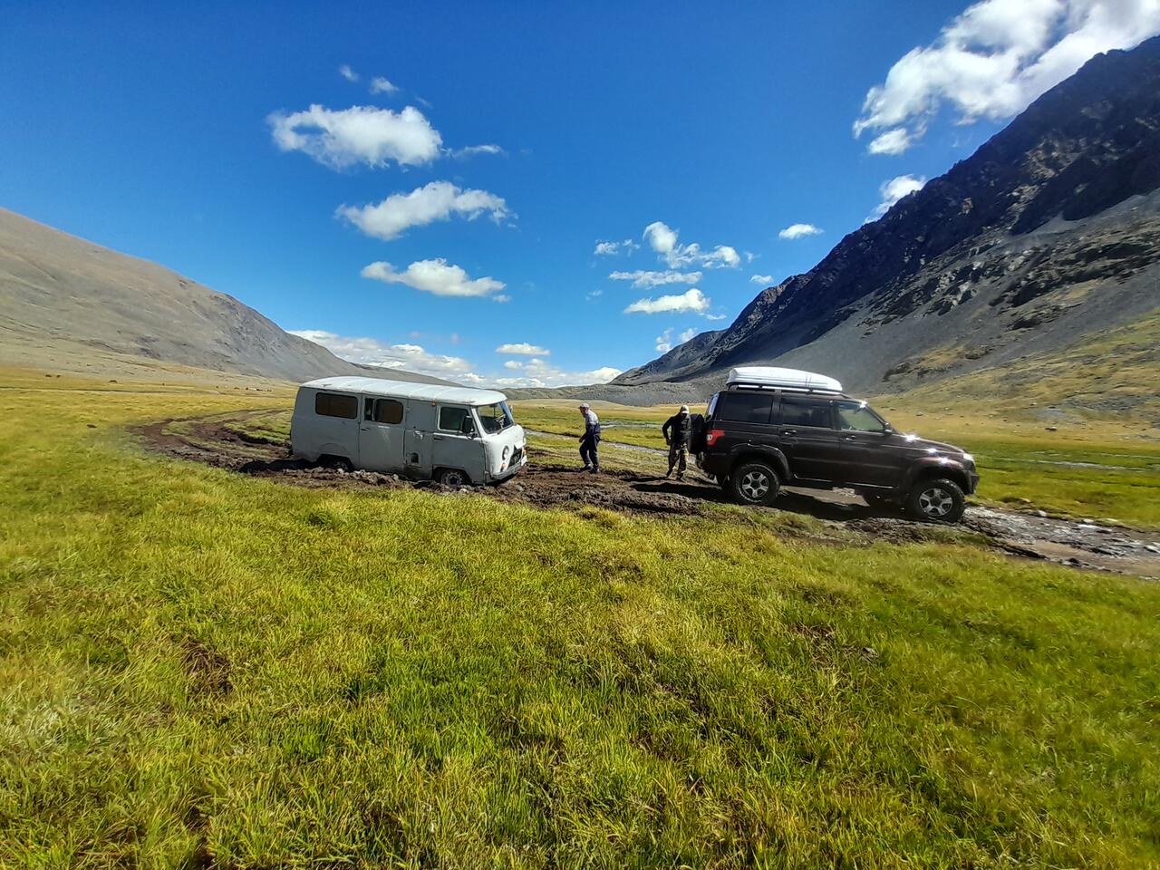 Дорога до долины Елангаша начинается на съезде с Чуйского тракта в сторону села Ортолык. Дорога эта грунтовая, проходит по заболоченной местности, неоднократно приходится ехать прямо по руслу реки, и необходим как минимум полноприводный транспорт повышенной проходимости. А лучше, конечно, нанять для заброски какую-то местную буханку или УАЗик. Примерно через двадцать километров дорога заканчивается, и дальше остается только пеший треккинг.