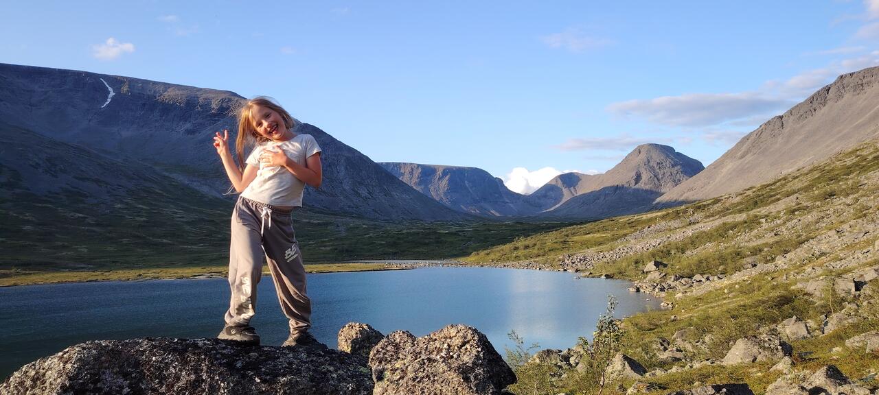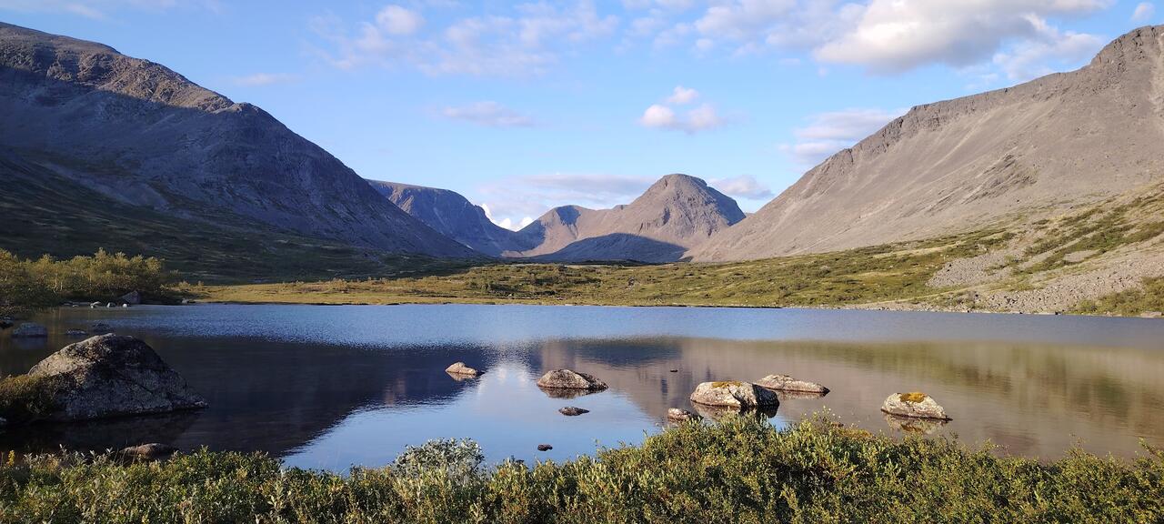 Название переводится с саамского как "озеро, пригодное для желанного отдыха. И действительно, более удобного места для длительной стоянки придумать сложно. Площадь поверхности невелика, но это с лихвой компенсируется расположением. Высота чуть менее 500 метров в горных условиях Хибин уже немного над зоной леса и позволяет без помех любоваться величием окружающих гор прямо с места стоянки. Для голого камня же ещё недостаточно высоко и берега покрыты разноцветной полной ягод тундрой. Холмистый рельеф древнего кара и близость леса не даёт разгуляться ветрам. Если же порывы всё же сильнее обычного, на берегу множество чуть более закрытых площадок с редкими карликовыми берёзками.