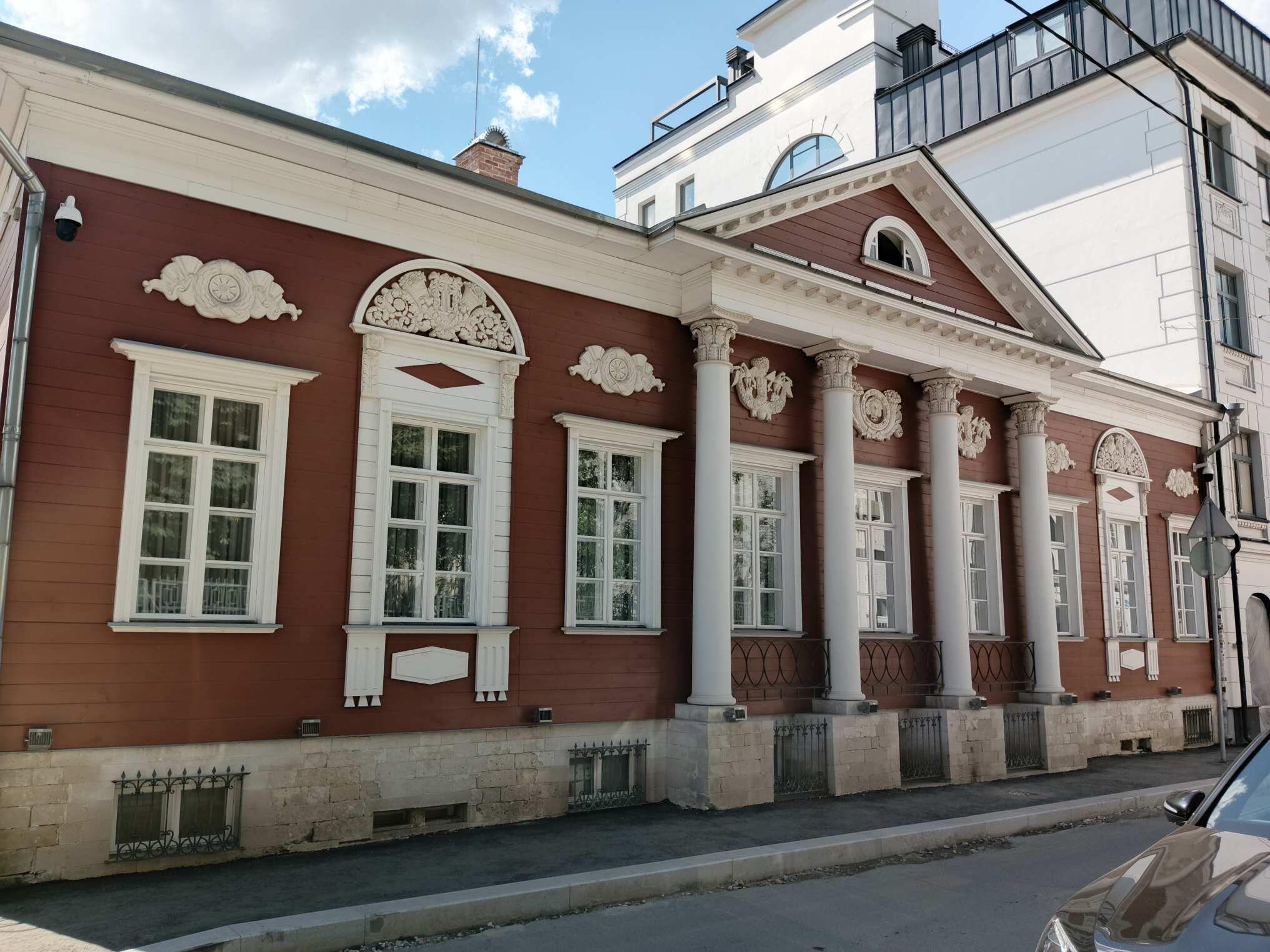 Этот дом в стиле классицизма, с портиком из четырех коринфских колонн, с фронтоном и красивой лепниной построили в 1804 году на белокаменном фундаменте бывшей усадьбы семнадцатого века, которая в середине века восемнадцатого принадлежала надворному советнику Ивану Мусину-Пушкину.