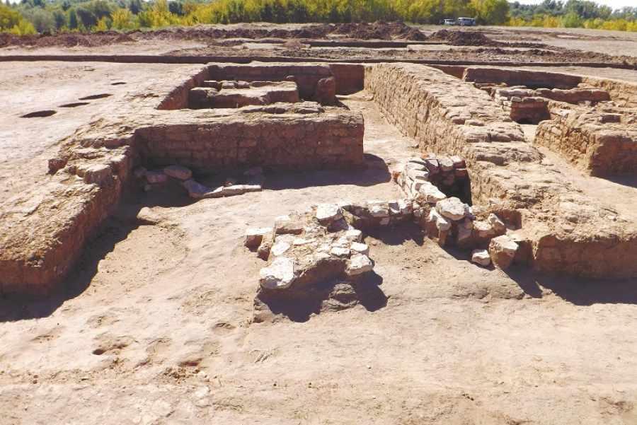 На месте раскопок найдено несколько промышленных печей, баня и мавзолей. Стены, ширина которых доходила до 1,5 метров, были построены из кирпича. Все строения были сделаны в тюркском стиле, что говорит о том, что эти постройки датируются XIII—XIV веками.