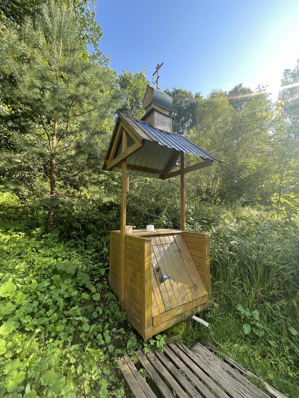 Что касается святого источника. Проезжающие мимо останавливаются поставить свечу и набрать святой водицы.