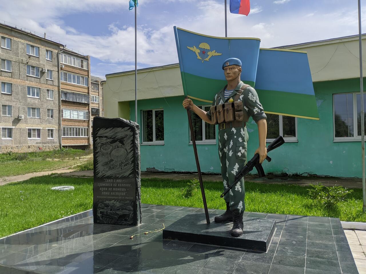 В Сибае каждый знает, где это. Памятник в виде бронированной разведывательно-дозорной машины установлен в честь военнослужащих, принимавших участие в локальных конфликтах, на улице Чайковского. Рядом - Центр народной культуры и досуга, краеведческая и юношеская модельные библиотеки.