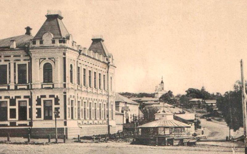 Двухэтажное кирпичное здание общественного назначения в стиле эклектики построили в 1876 году по проекту архитектора Хрещеновича. До революции здесь располагалась земская управа, которая ведала всеми хозяйственными делами уезда.