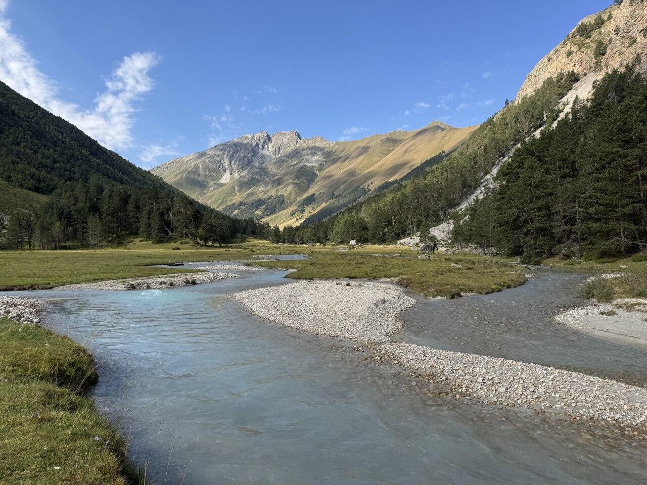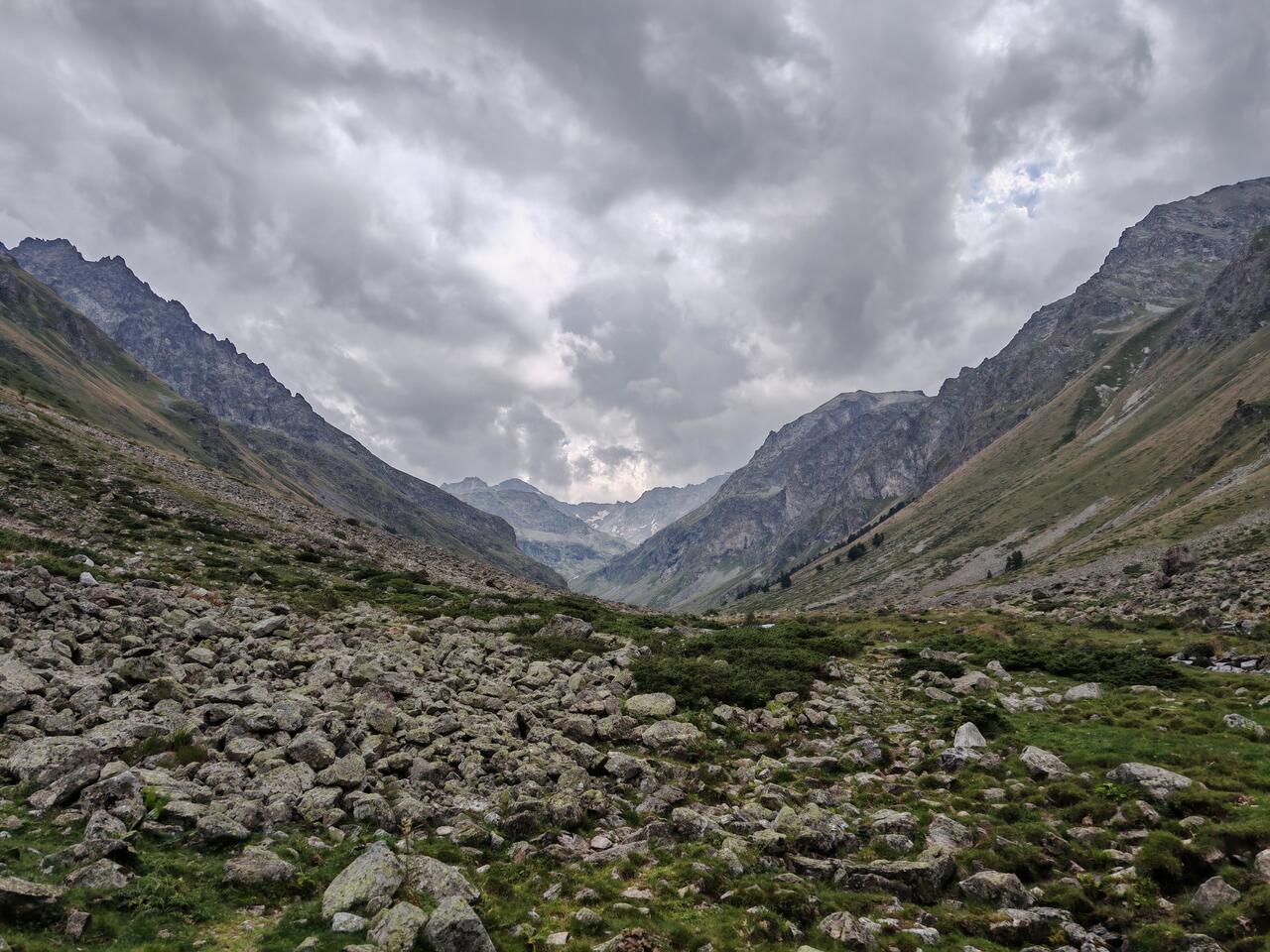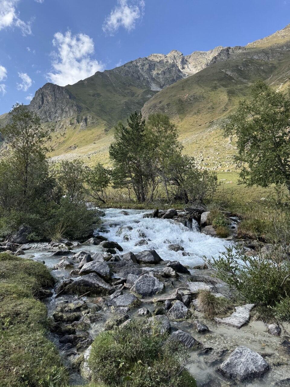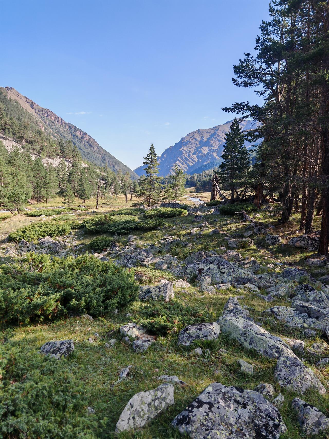 Мы прошли всю долину реки Марка до начала взлетов, которые ведут либо на Макринские озера и далее на перевал Бадук, либо на перевал Арючат. Долина очень живописная, достойна посещения. Пейзажи меняются - тут и лес. и заваленные сваленными деревьями луга, водопад.