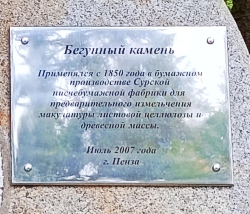 Бегунный камень - это исторический промышленный артефакт, который сейчас представляет собой жанровую скульптуру в Пензе.