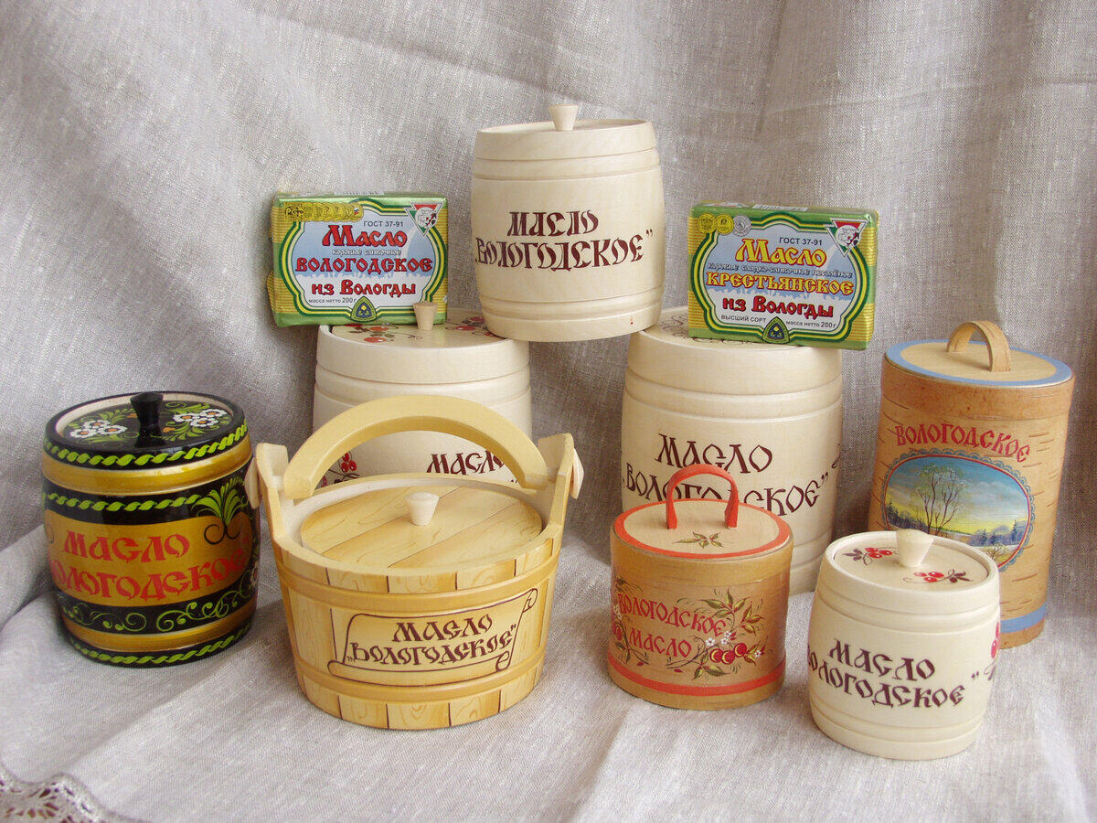 Вологда у жителей нашей страны прочно ассоциируется с вологодским маслом и вологодским кружевом. Разнотравье заливных лугов области способствует получению сливочного масла с неповторимым нежно-ореховым вкусом. Традиции маслоделия продолжают крупные предприятия пищевой промышленности Вологды, Грязовца, Череповца, Сокола. Своеобразный стиль вологодского кружева сформировался благодаря особой технологии плетения, использованию многообразного орнамента, творческому осмыслению традиций. Знамениты и другие изделия народных промыслов Вологодчины: великоустюжское чернение по серебру, шемогодская резьба по бересте, чернолощеная керамика.
