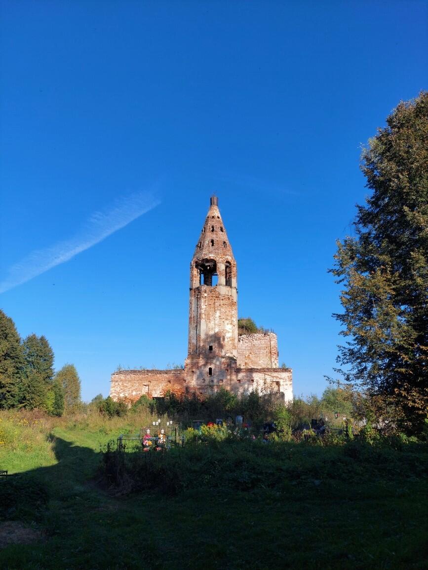 Из истории. В 1658 году Митрополит Ростовский Иона Сысоевич дал храмоздательную грамоту на постройку деревянного храма в селе. Дата перестройки в камне не известна, предположительно — середина 18 века. В 1789 году жители села обращаются к Митрополиту Арсению с просьбой о благословении перестройки каменного Троицкого храма. От прежнего храма остался только зимний. Колокольня и летний храм были отстроены к 1795 году, но, из-за произошедшего пожара, храм освятили только в 1800 году.