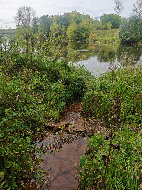 Водоотдача источника достаточно высокая, что обеспечивает стабильный поток воды даже в засушливые периоды. Для удобства пользования слив оборудован трубой. Стоит отметить, что вода в роднике богата железом, это заметно по коричневому оттенку чаши источника.