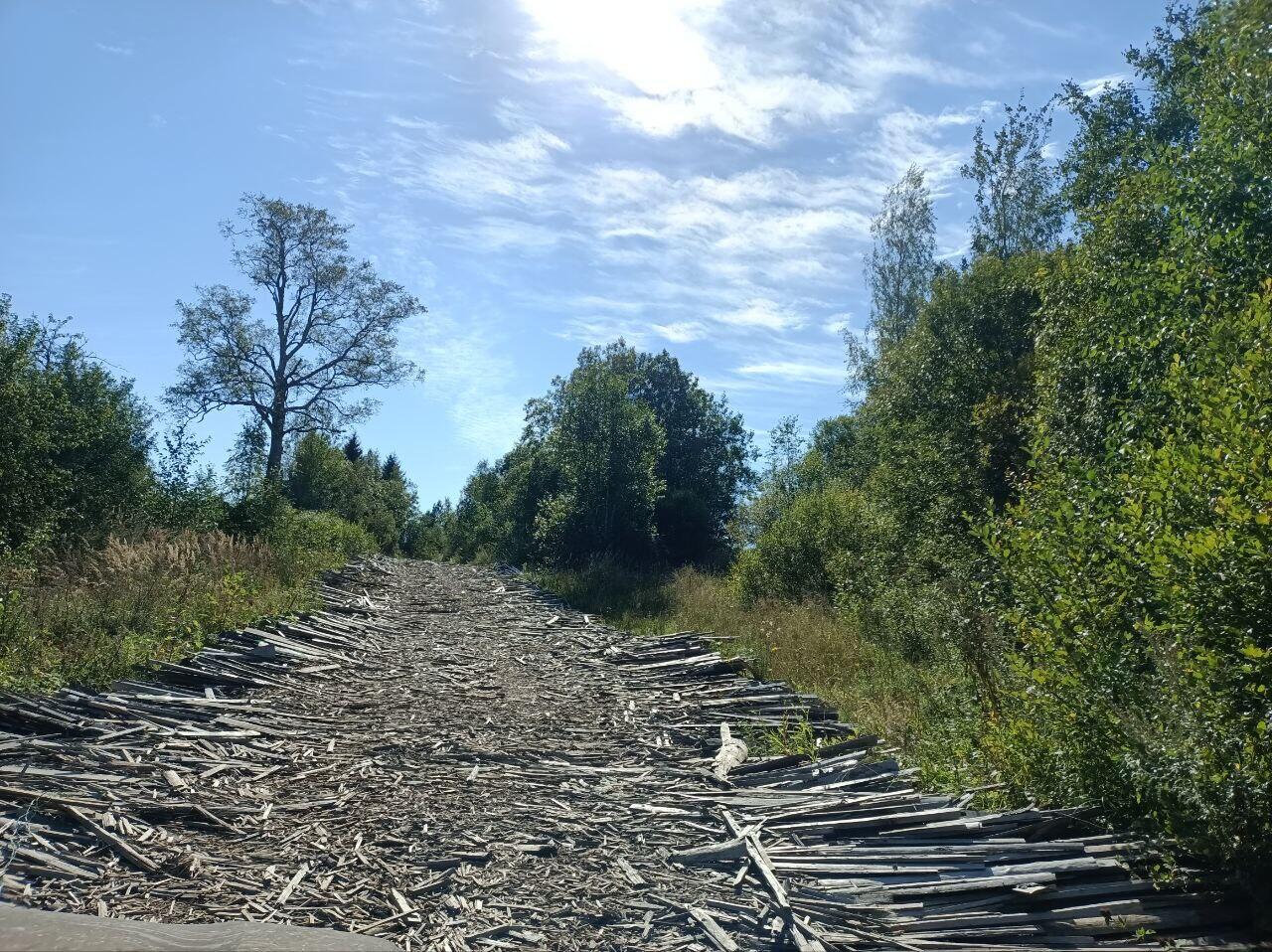 А вот далее начинается дорога очень «веселая». То-то подобное я и ожидал увидеть. Отмечу, что нам ещё повезло, что последние 12 дней стояла абсолютно сухая погода и солнечная погода, без малейшего дождичка и с дневными температурами выше +20 градусов. А дорога представляет собой старую лесовозку, местами на сотни метров покрытую лежневками, местами глубокие колеи в глинистом грунте с лужами. Жесть, в общем. После дождей тут на своем Дастере мы бы точно не проехали. Подключив полный привод и «включив голову», удалось преодолеть 3,5 км из 6. Удалось уехать немого дальше озера Татары. А дальше всё – глубоки лужи с вязки дном.