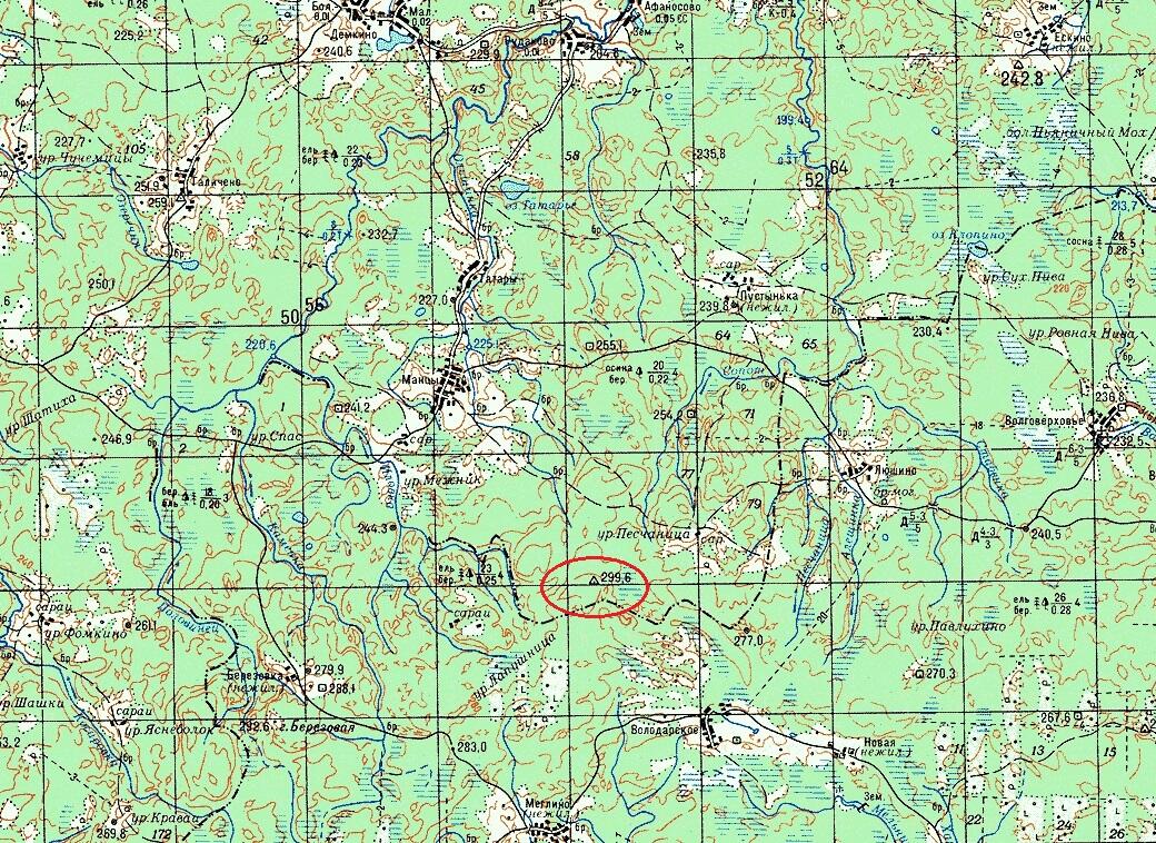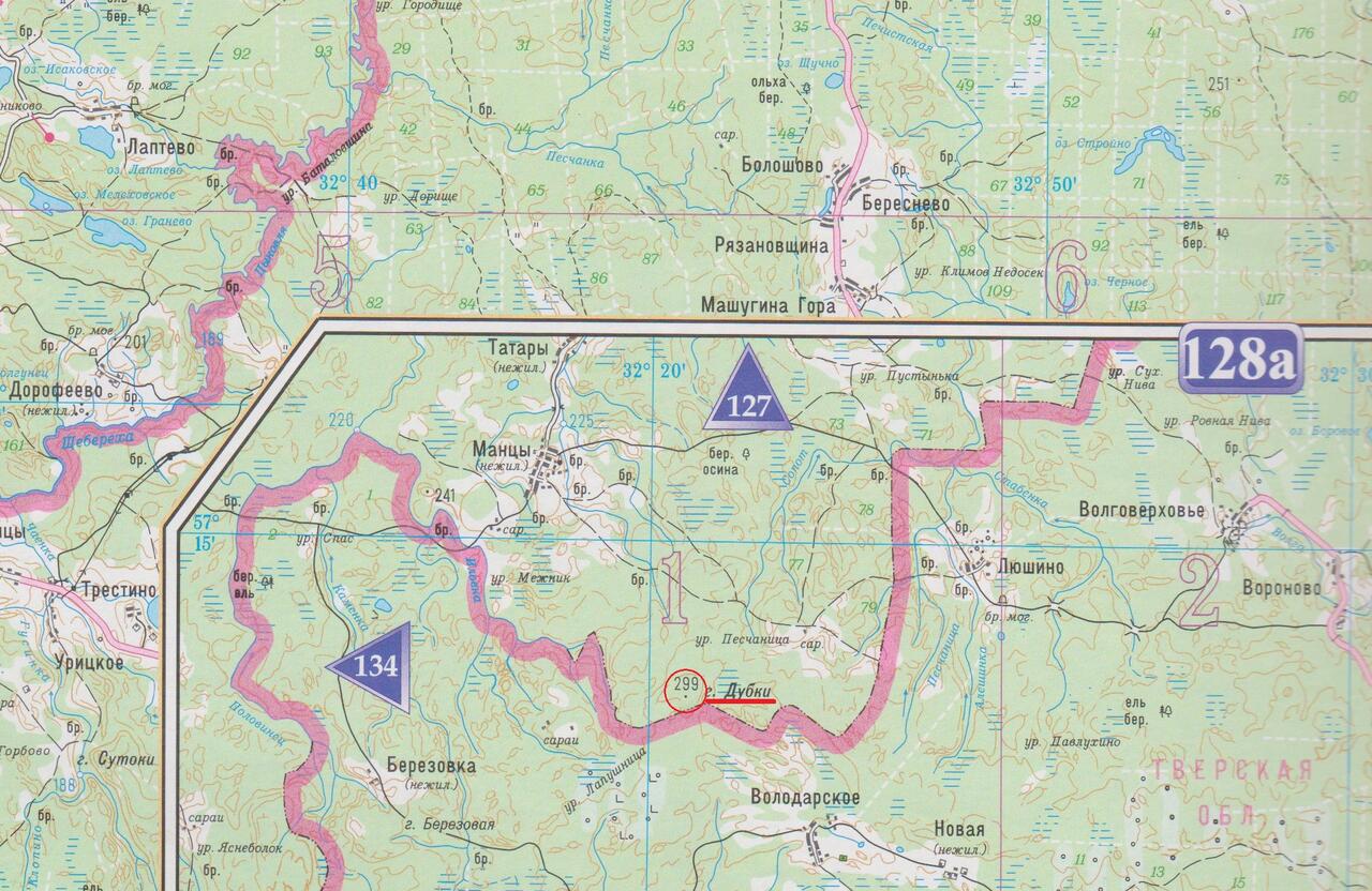Внимательное изучение топографических карт и информации о высшей точке новгородской области, дает понять, что в Марёвском районе, есть гора с отметкой 299,6 м. Находится она почти на самой границе с Тверской области, и каких либо дорог к ней не ведет. В бумажном атласе Новгородской области 2008 года издания я нашел даже ее название – гора Дубки!