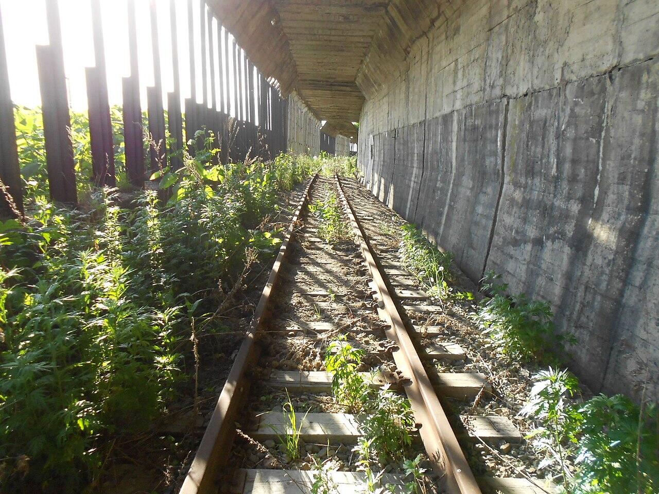 Так и остался тут кусок узкоколейки идущей вдоль берега татарского пролива под защитными галереями.