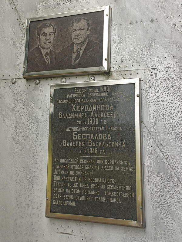 22 июня 1990 года во время планового испытательного полета на МиГ-29УБ, выполнявшегося в составе заслуженного летчика-испытателя Херодинова Владимира Алексеевича и летчика-испытателя 1 класса Беспалова Валерия Васильевича начались неполадки. После выполнения очередной фигуры "колокол" самолет по какой-то причине (она до сих пор не ясна) перестал слушаться пилотов, впав в плоский штопор. Летчики до последнего пытались установить контроль над машиной, видя перед собой деревни. Самолет упал в двух сотнях метров от жилых домов деревни Шалимово вместе с так и не успевшими катапультироваться летчиками