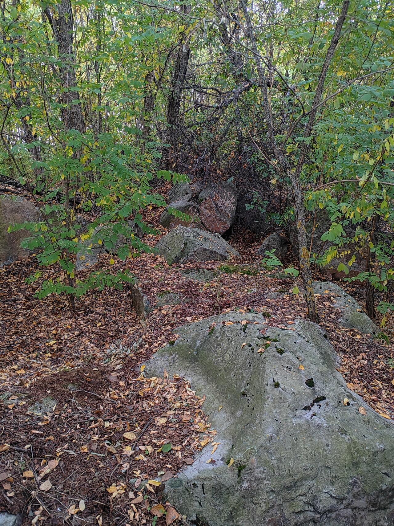 Черниговские песчаники расположены недалеко от села Черниговка, в Задонском районе. Здесь располагается сеть оврагов, которые словно линии нейросетей пересекают густую растительность. В одном из глубоких оврагов имеется скопление массивных камней — причудливо искривлённые валуны из песчаника. Их размеры и формы варьируются, на некоторых явно прослеживаются углубления или необычные полости, словно природные скульпторы, незримые для инопланетного глаза, работали здесь миллионы земных лет.
