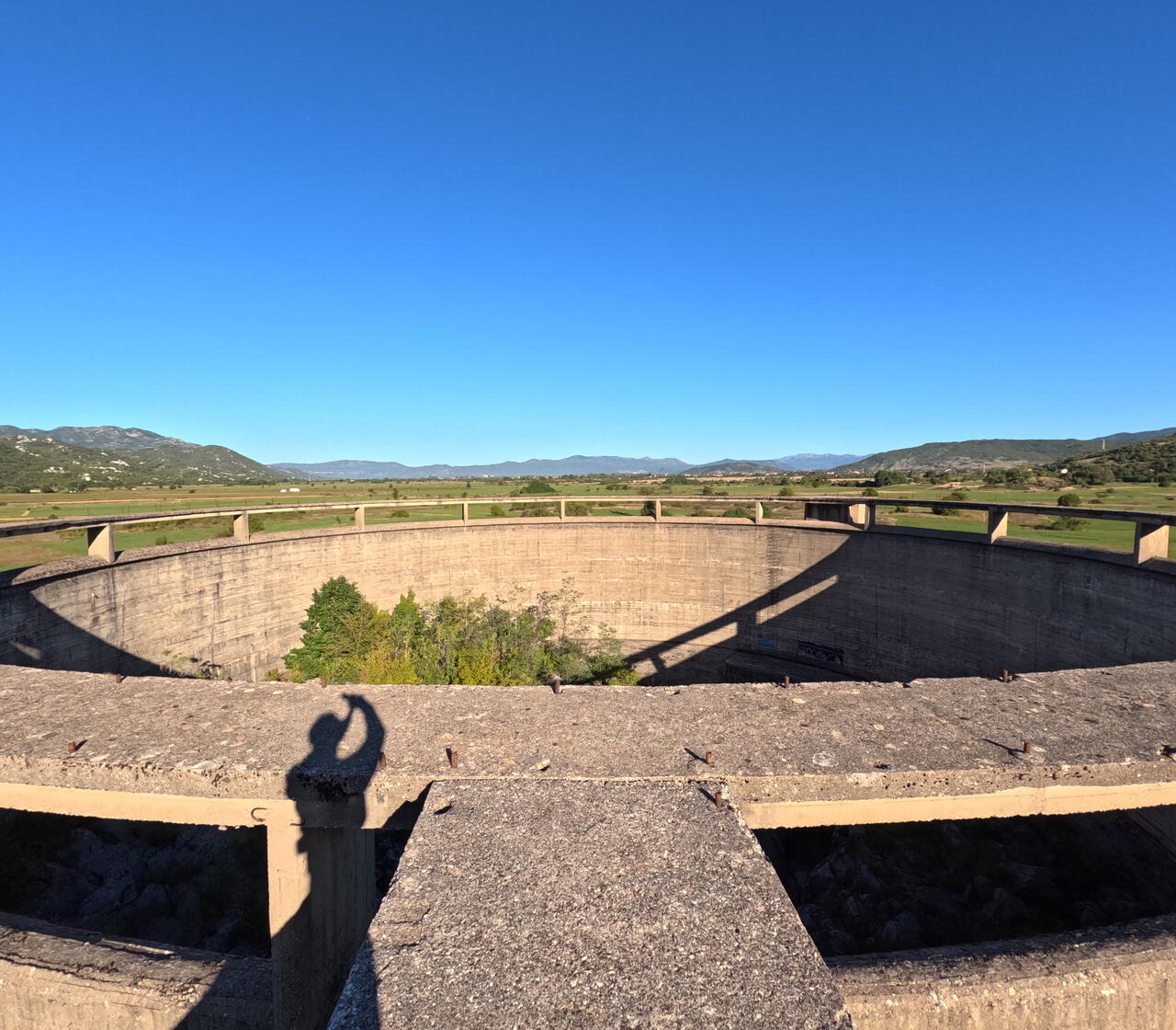Социалистически энтузиазм рождает идею поставить плотину вокруг этого карстового понора, дабы не пустить воду. Сказано-сделано. Великолепная цилиндрическая плотина построена, и стоит до сих пор, но в засушливое лета и воронка и вокруг - все сухо как в пустыне. Вода нашла другие дырочки, малозаметные, коих приличное количество. Карст - есть карст.