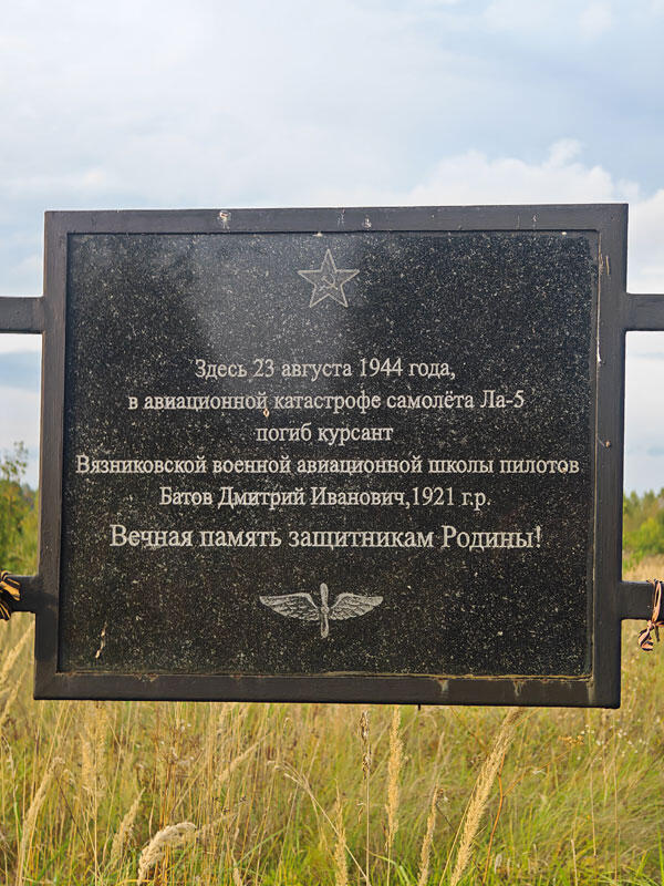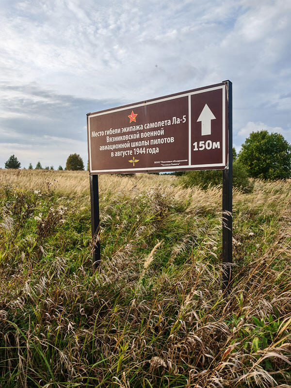 Истребитель Ла-5 упал на поле под деревней Коржавино в августе 1944 года. Им управлял курсант вязниковской авиационной школы пилотов Дмитрий Батов. Что произошло с машиной во время учебного полета, экспертиза стразу после трагедии установить не смогла.
